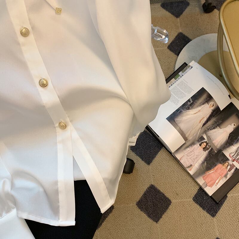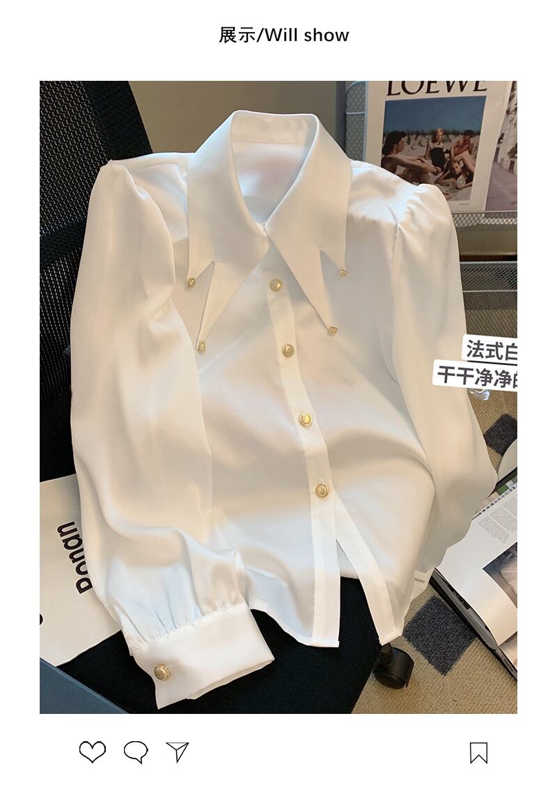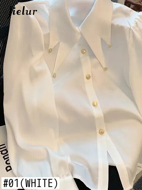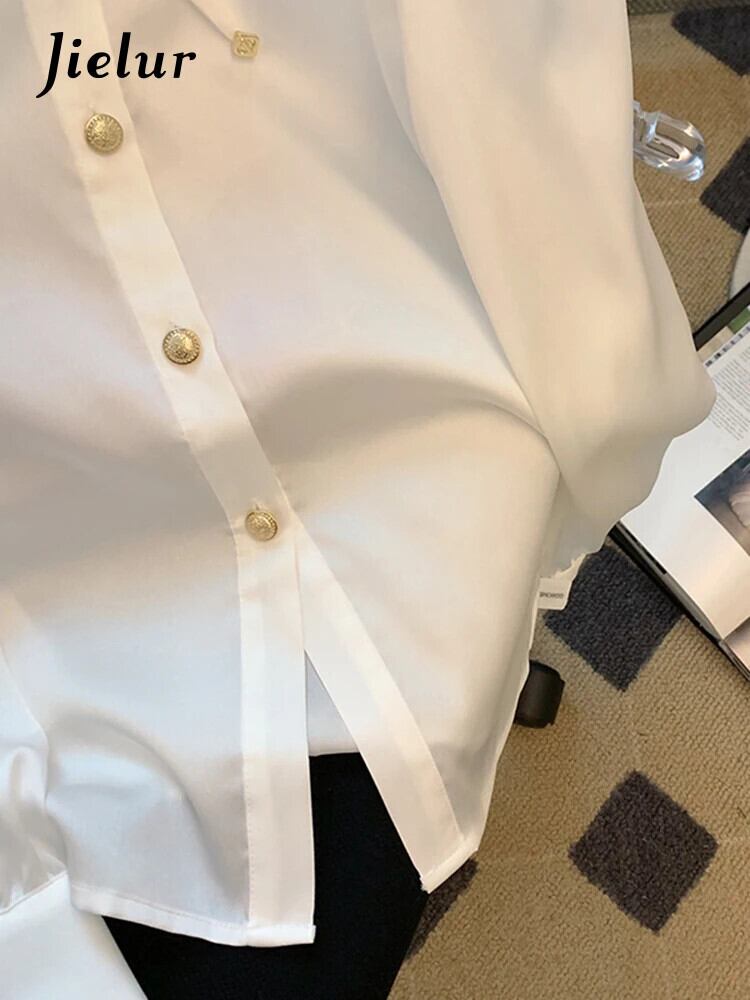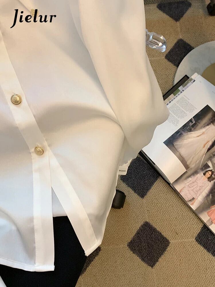 送料無料 Jielur フレンチソリッドカラーレディースシャツルーズシフォンシャツホワイトシンプルベーシック長袖シャツ ロング AE12188787861927611131