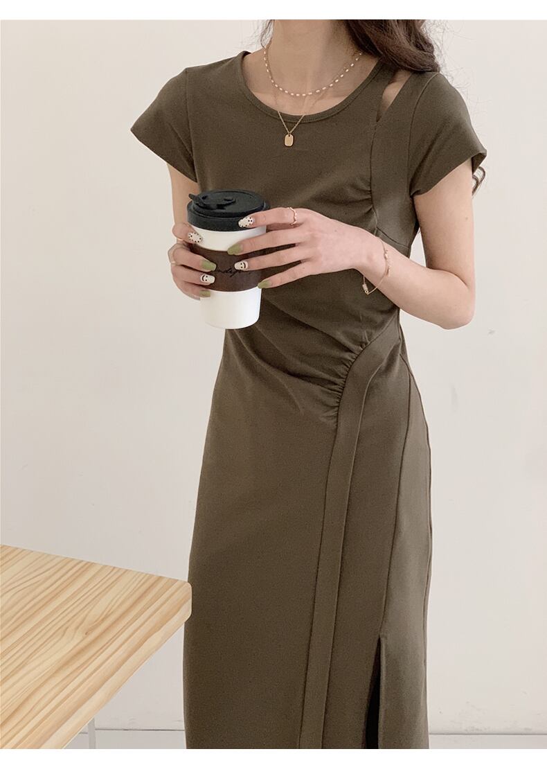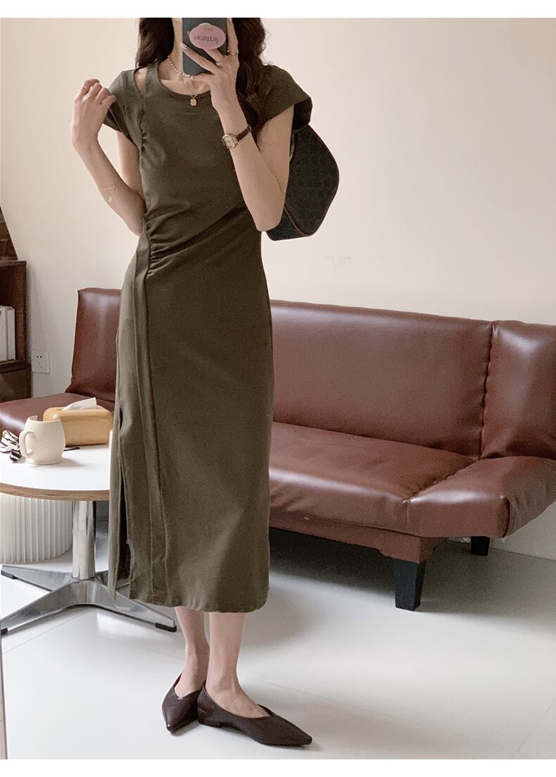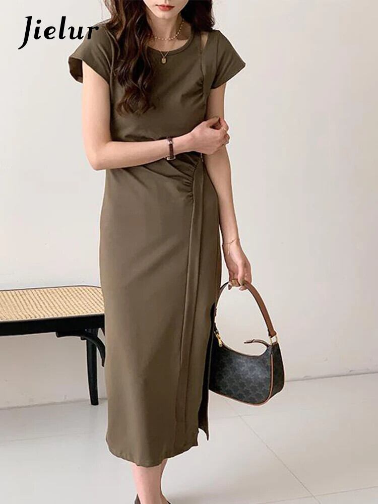 送料無料 Jielur ウエストドレス女性フレンチシックドレスサマースタイル半袖オールマッチミディドレス ショート ハーフスリーブ 夏物 AE12188787847790849035