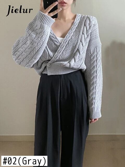 送料無料 Jielur 2022 女性 V ネックニットカーディガンセーターヴィンテージニットセーター長袖秋特大ジャンパートップス ロング オータム 秋物 Vネック ビンテージ AE12188787816751762550
