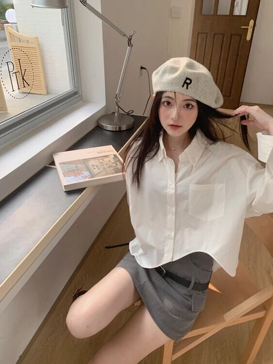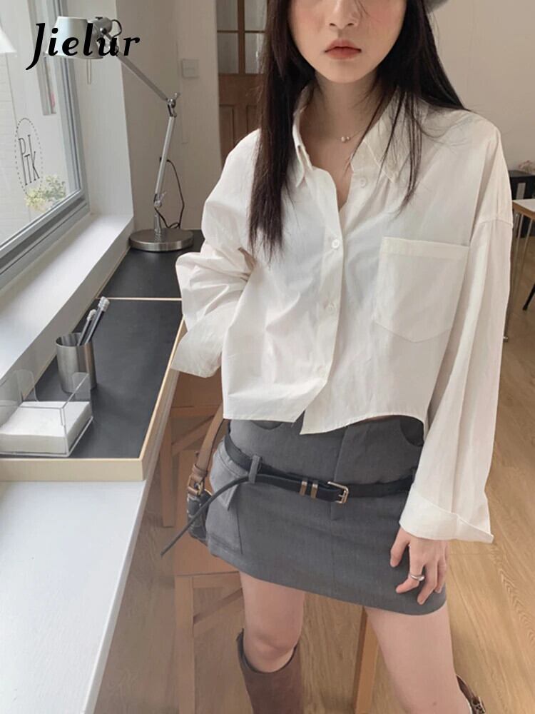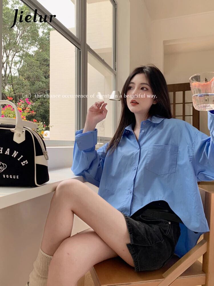 送料無料 Jielur 甘い不規則なスリム女性のシャツ夏のルーズスリーブシャツベーシックホワイトブルー女性トップ 大人ガーリー スウィート キュート カジュアル サマー 夏物 AE12188787831389554553