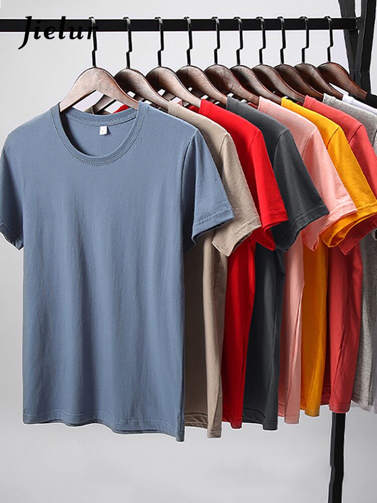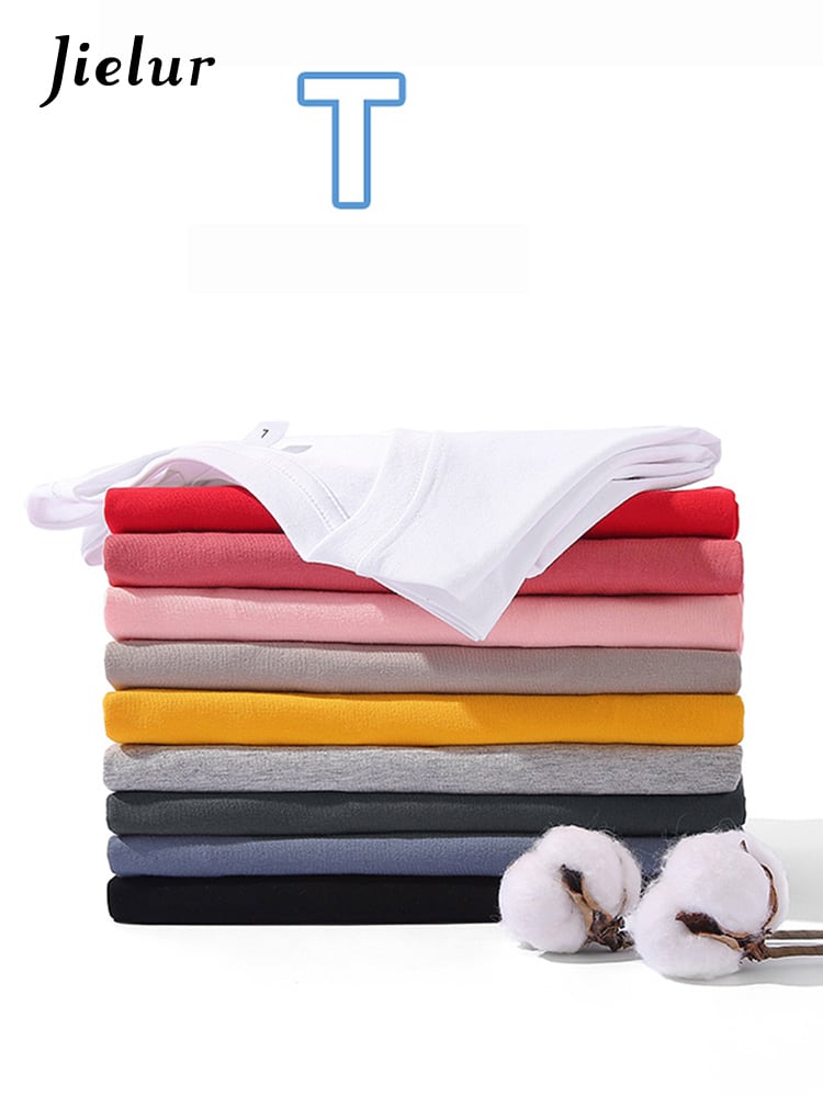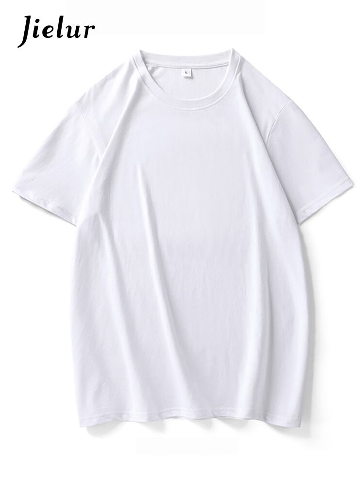 送料無料 Jielur 女性黒、白、無地 Tシャツ綿 Tシャツ女性半袖 Tシャツ夏 Clic トップス ショート ホワイト ブラック コットン ハーフスリーブ サマー 夏物 ソリッドカラー AE12188787873884928995