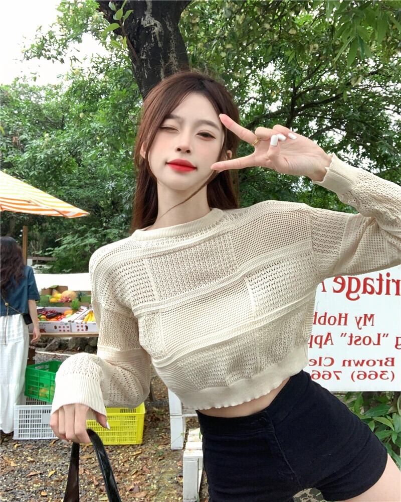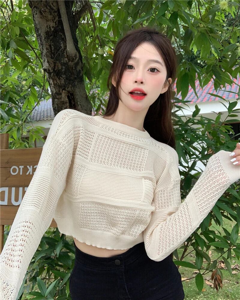 送料無料 Jielur 夏中空アウト無地女性ブラウススリム甘いブラウス女性シンプルなベーシックルーズ長袖トップ ロング 大人ガーリー スウィート キュート カジュアル サマー 夏物 ソリッドカラー AE12188787843985326782