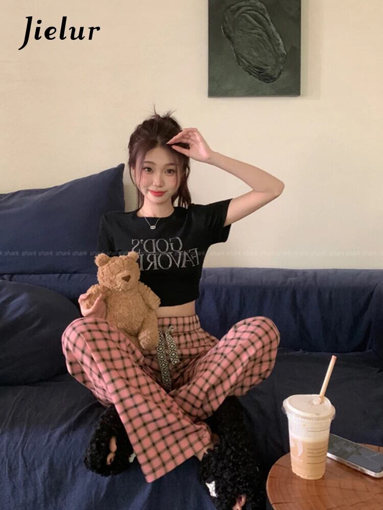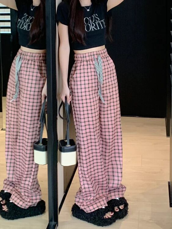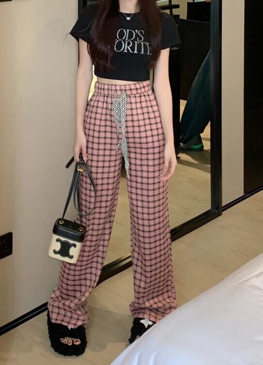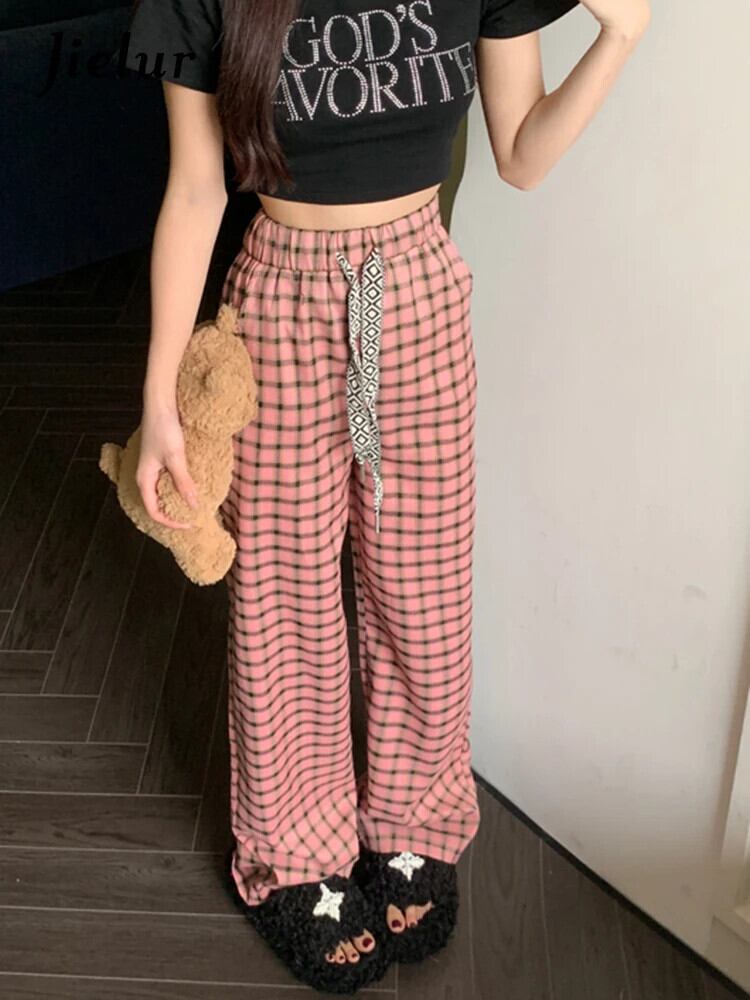 送料無料 Jielur 春ルーズ巾着ウエストストレートレディースパンツピンクスリムパンツシンプルな女性のパンツ スプリング 春物 AE12188787841148069118