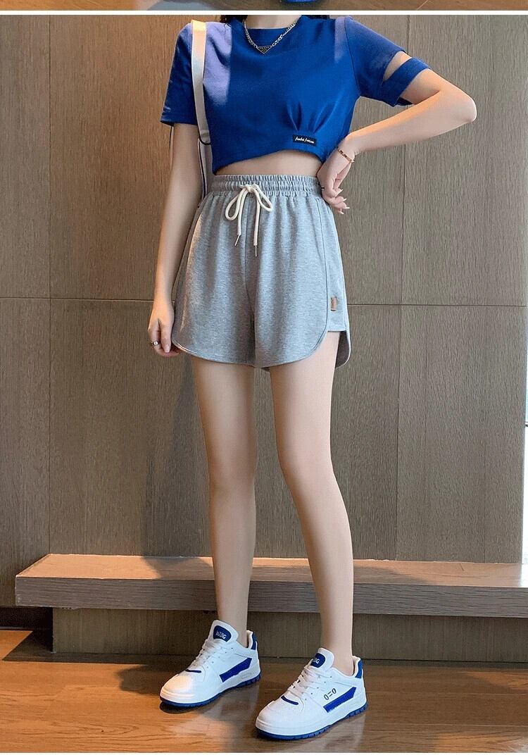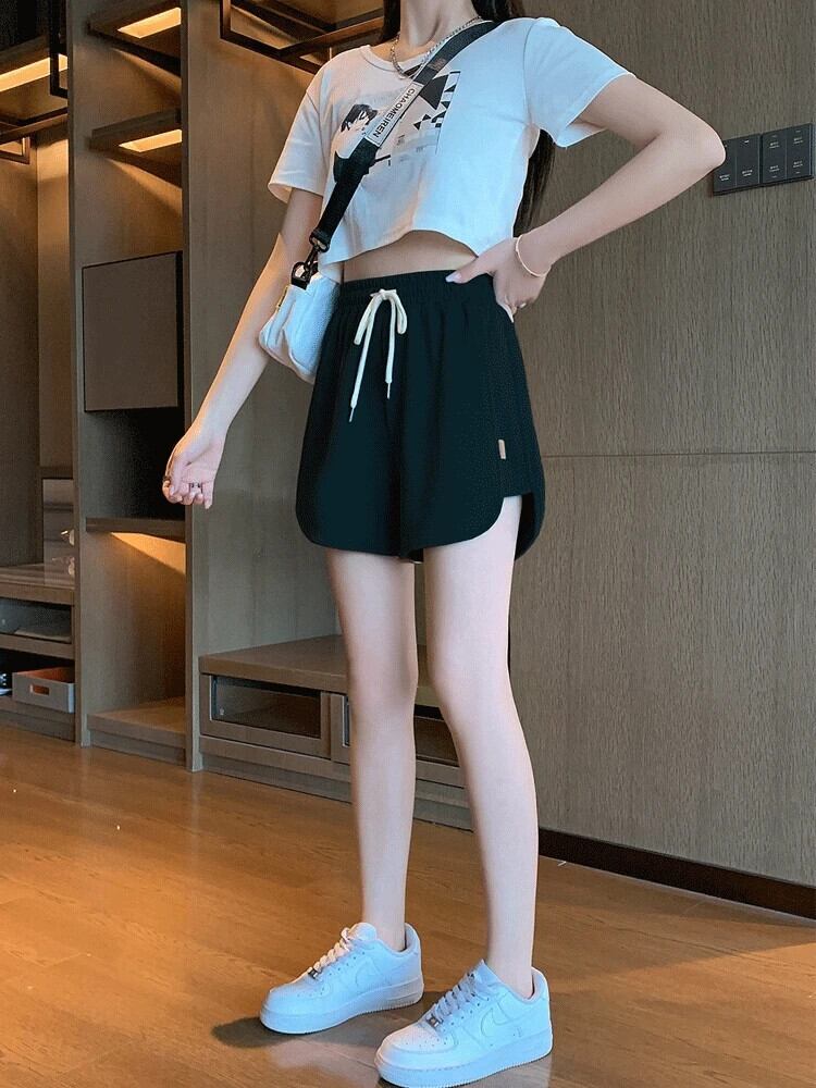 送料無料 Jielur 夏ルーズベーシック薄型女性のショーツ無地スリムショーツ若い黒ライトグレー女性ショーツ ブラック サマー 夏物 ブルマー ソリッドカラー AE12188787823403411025
