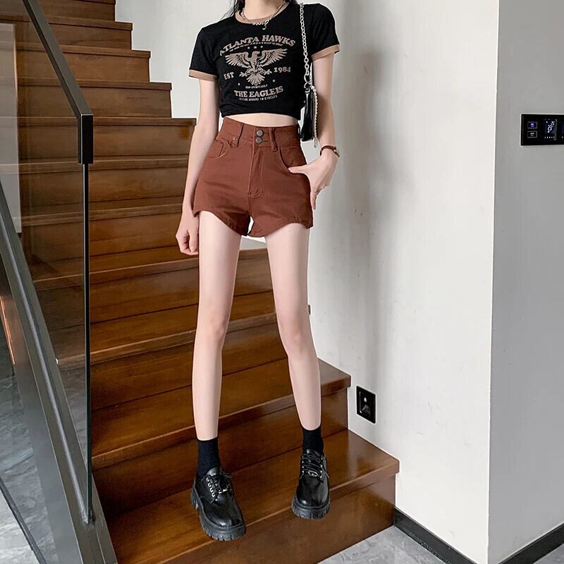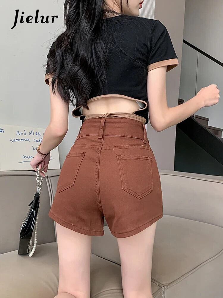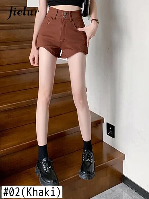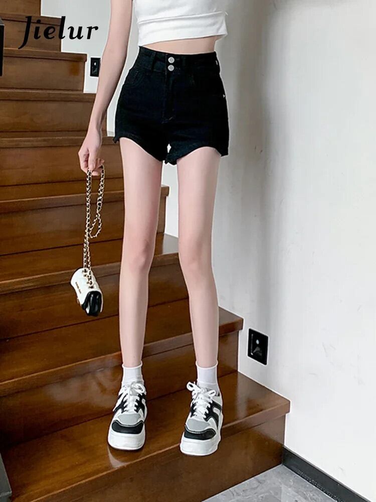 送料無料 Jielur 夏スリムデニムショーツ女性ウエストシンプルなセクシーな女性のショーツカーキ黒スリムストリートショーツ ブラック サマー 夏物 ブルマー AE12188787811778227110