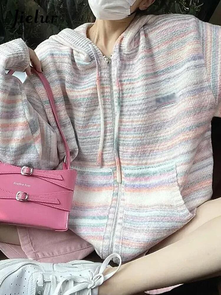 送料無料 Jielur 秋のコントラストカラースリムカーディガン女性スイートストリートカーディガンベーシックストライプトップ女性 大人ガーリー スウィート キュート カジュアル オータム 秋物 AE1218878787273908291