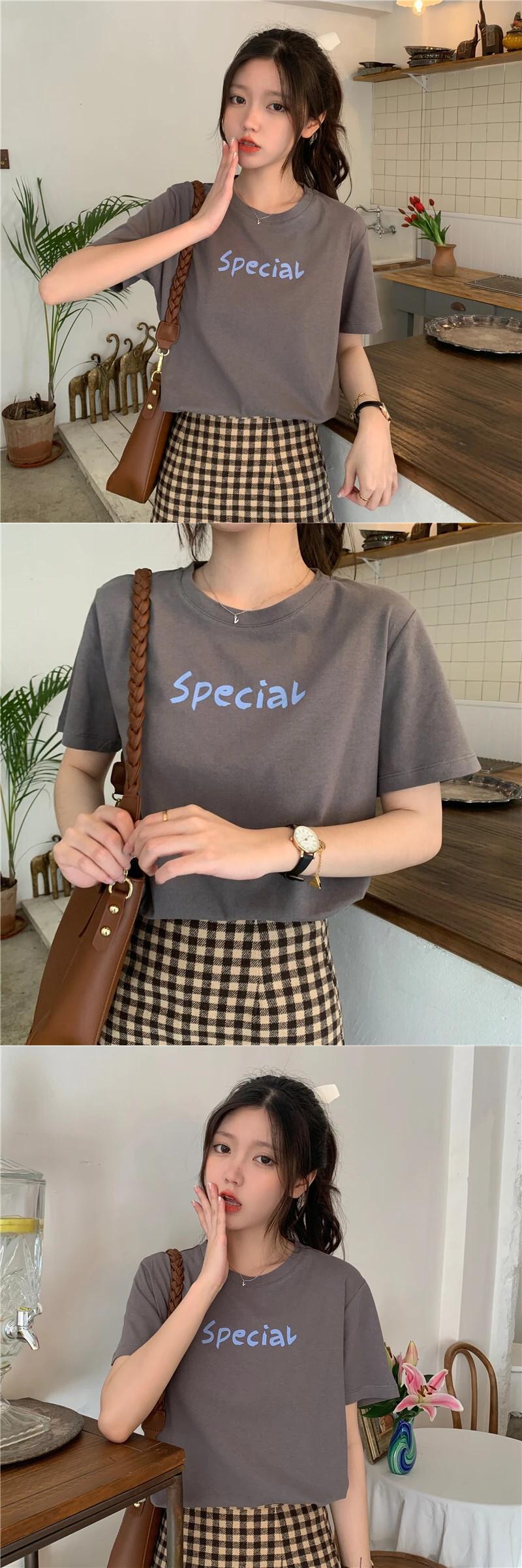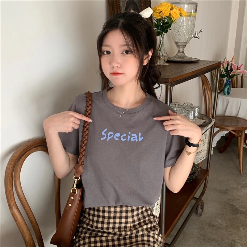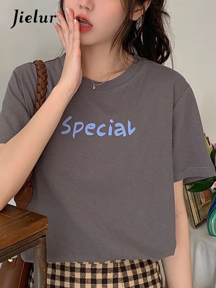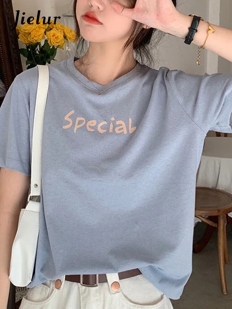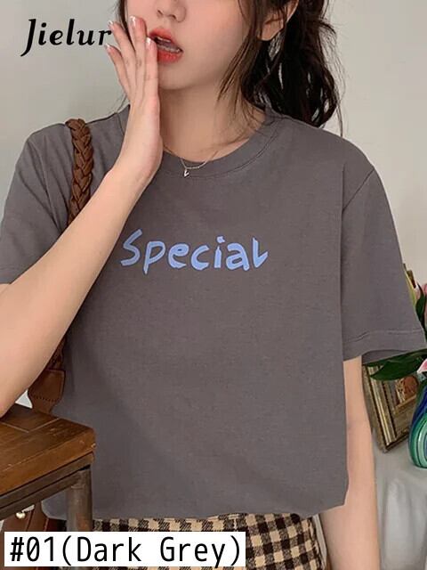 送料無料 Jielur シンプルなレタープリント半袖 Tシャツ女性ダークグレー白青 Tシャツ基本夏の女の子トップス M-XL ショート ホワイト ブルー ハーフスリーブ サマー 夏物 AE12188787852008975974