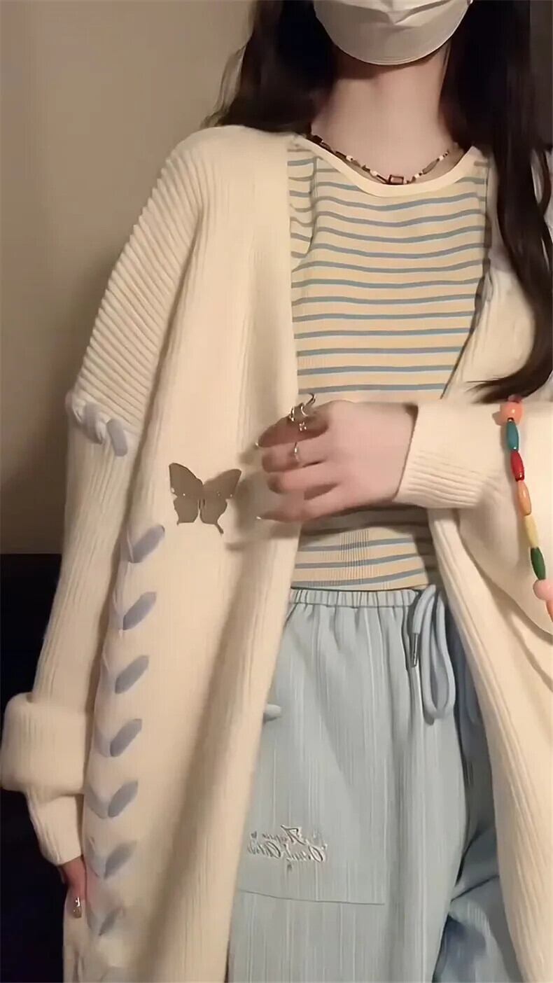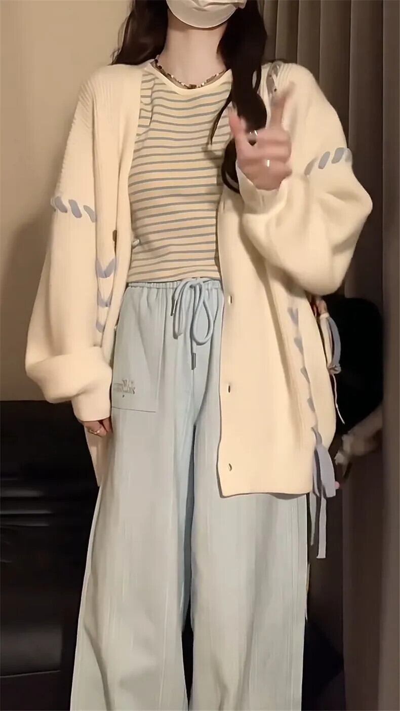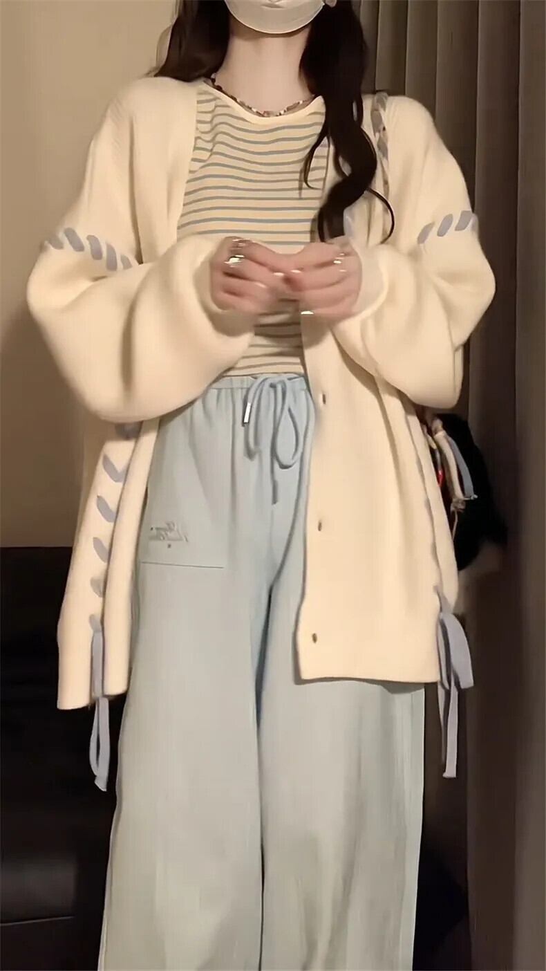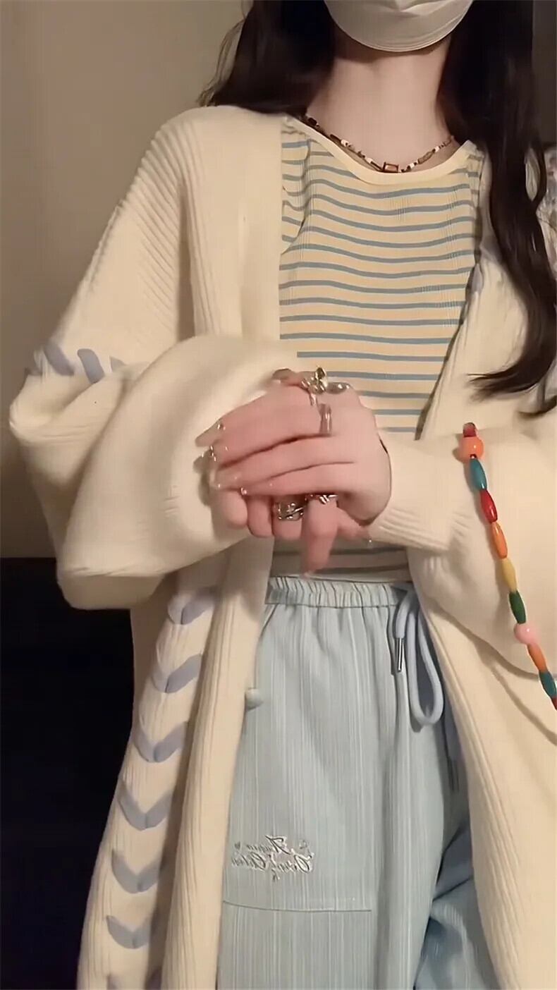 送料無料 Jielur スタイルシックなプリントペースアップ女性カーディガン秋ルーズシンプルニット 2 色カーディガン オータム 秋物 AE12188787832488584347