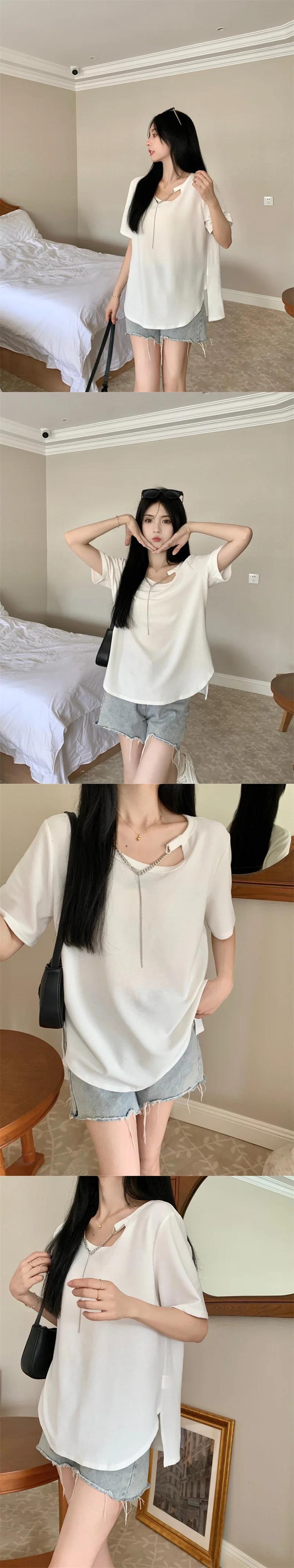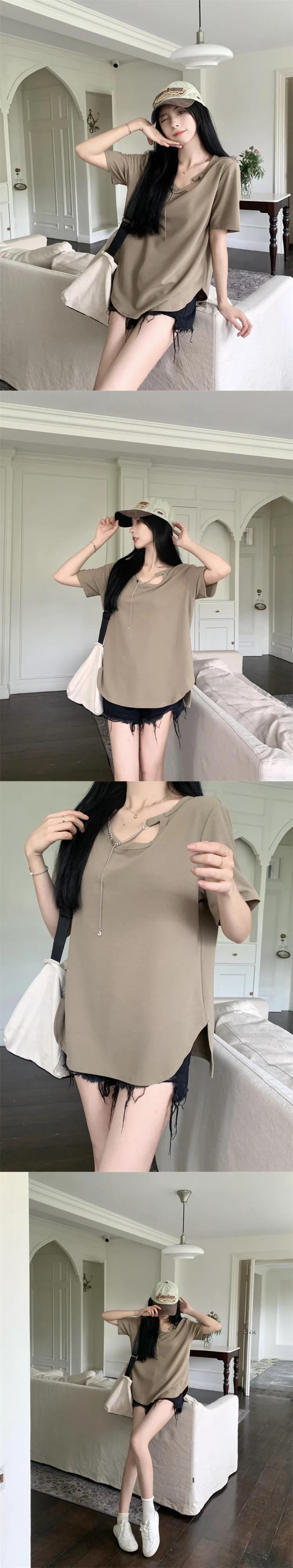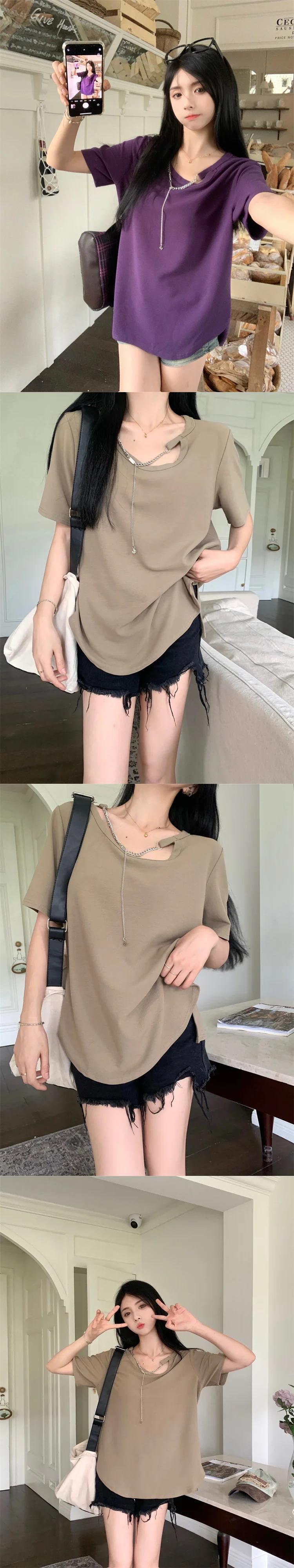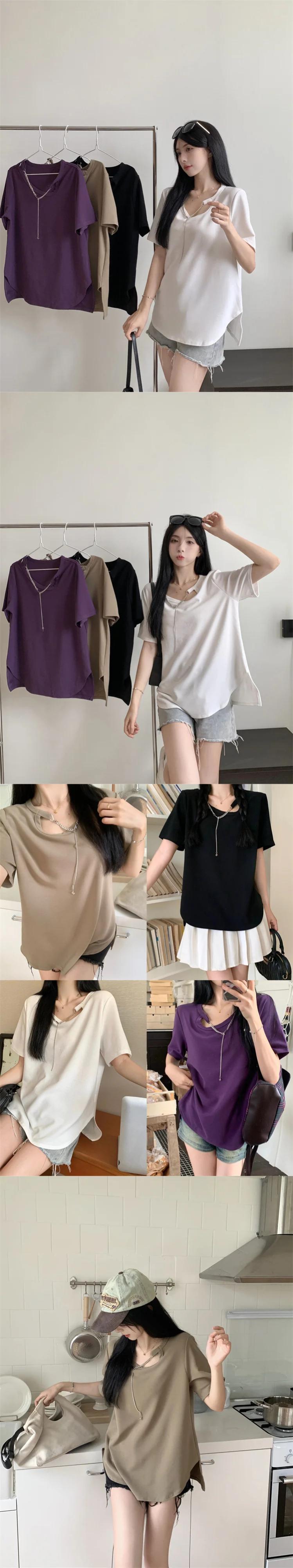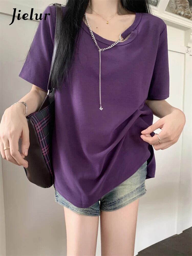 送料無料 Jielur 夏無地スリムレディース Tシャツルーズ Tシャツ Woamn ブラック ホワイト パープル カーキ シンプル トップ サマー 夏物 ソリッドカラー AE12188787816095575112