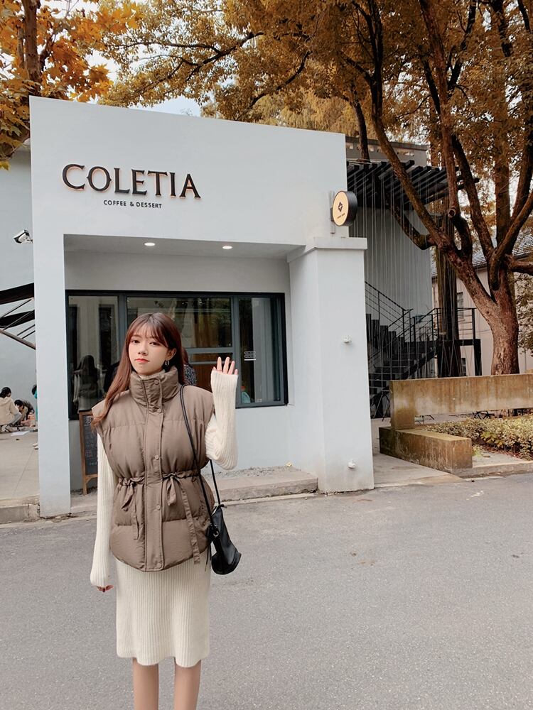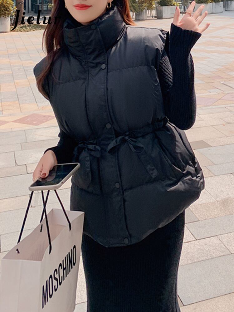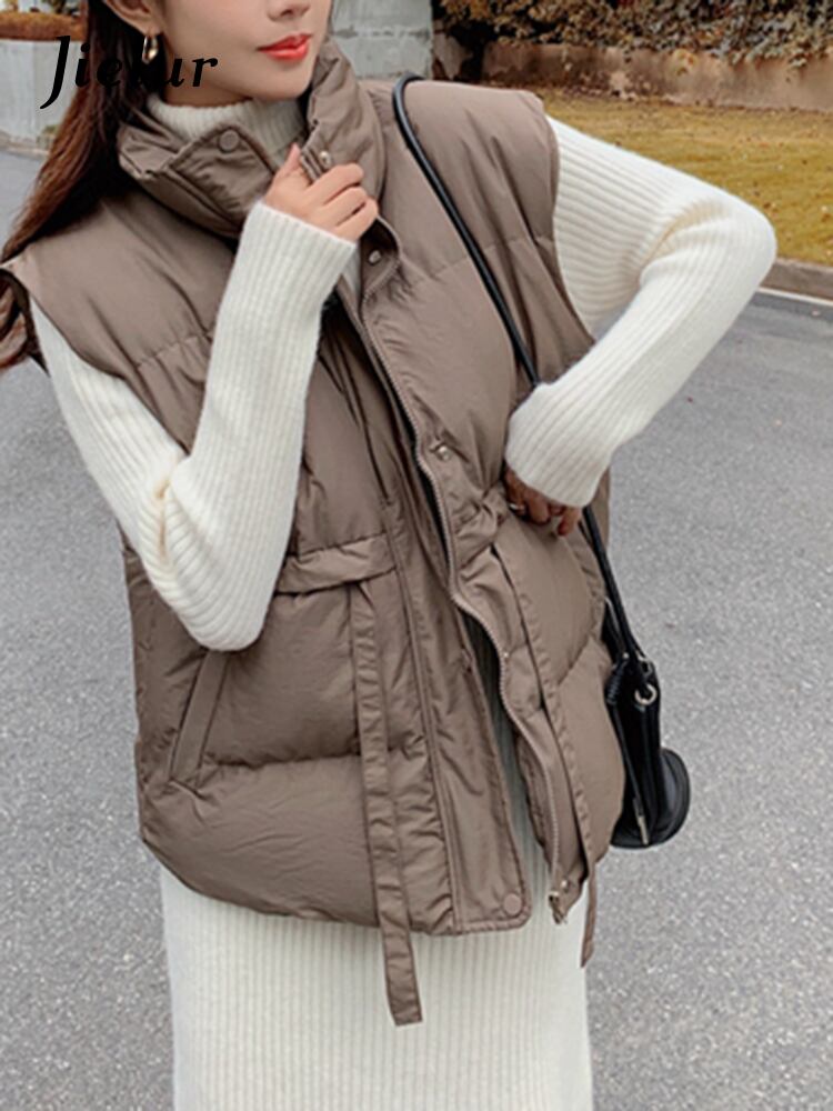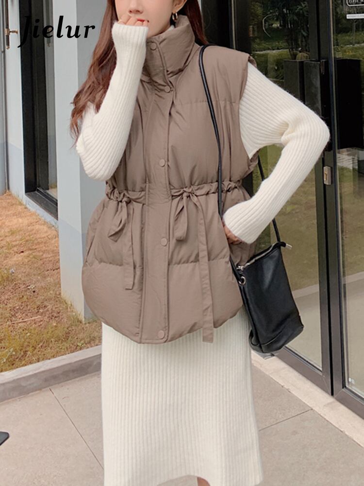 送料無料 Jielur 冬ソリッドカラー巾着ルーズコットンベストジャケット女性のチョッキノースリーブアウターアプリコットパーカー ウィンター 冬物 AE121887878561618158