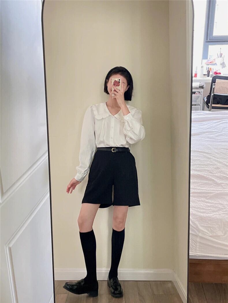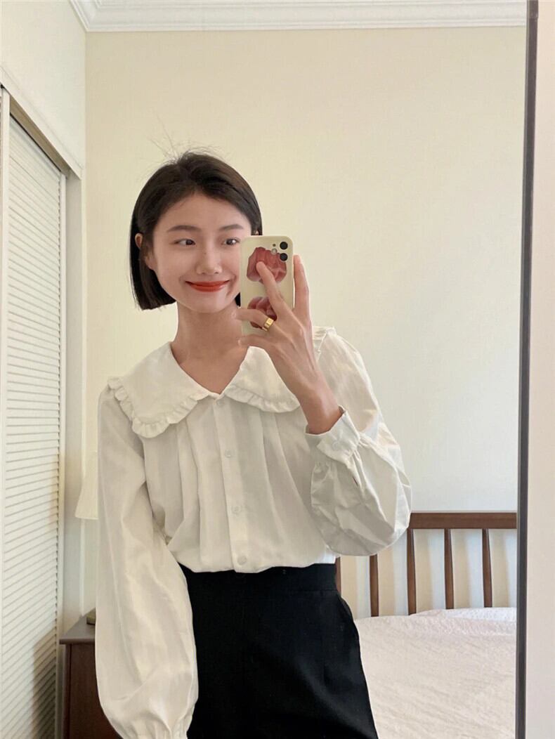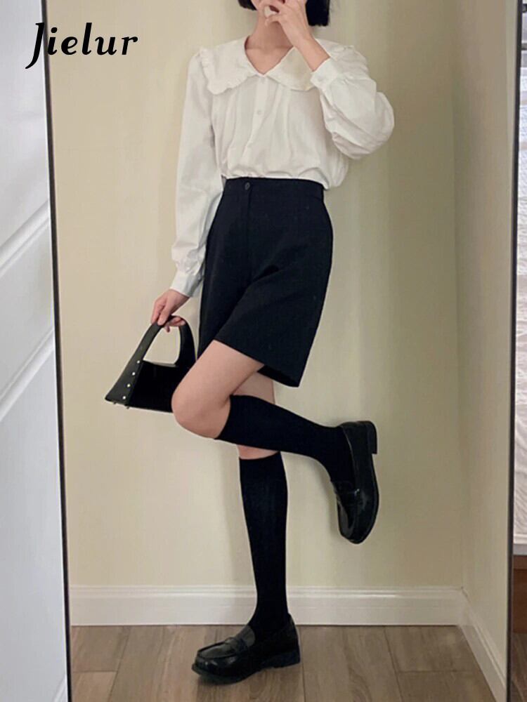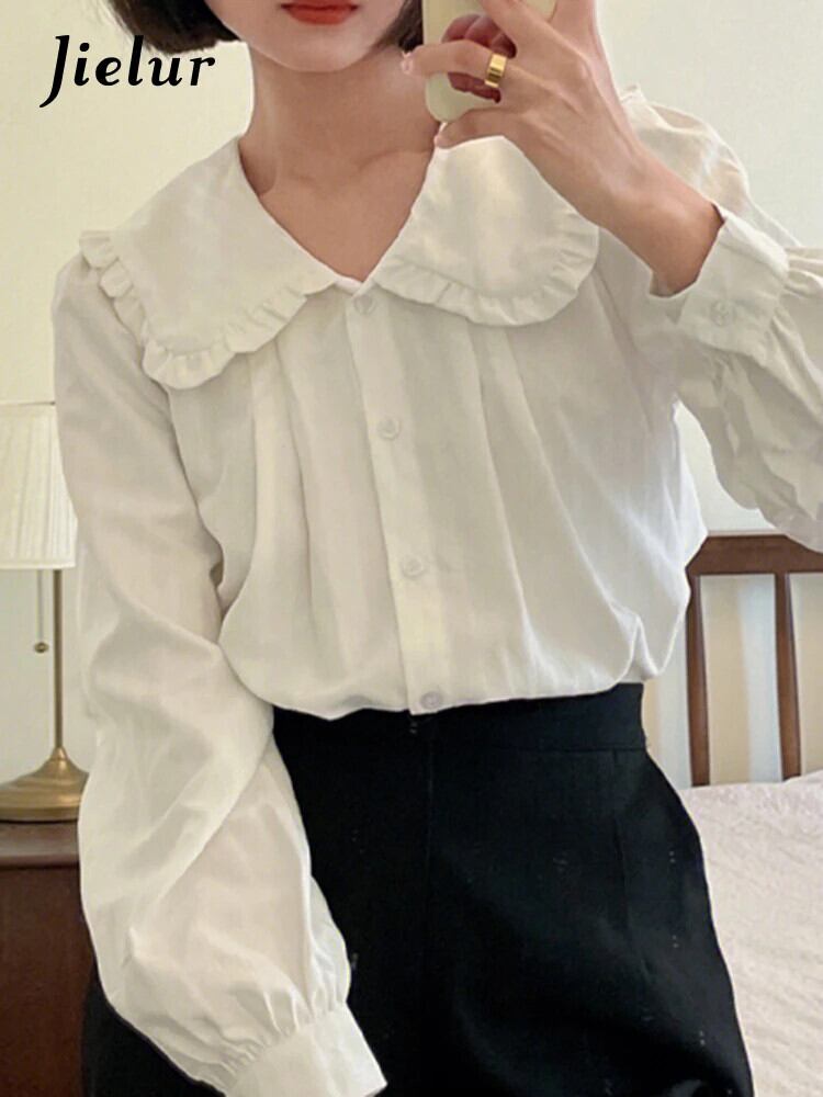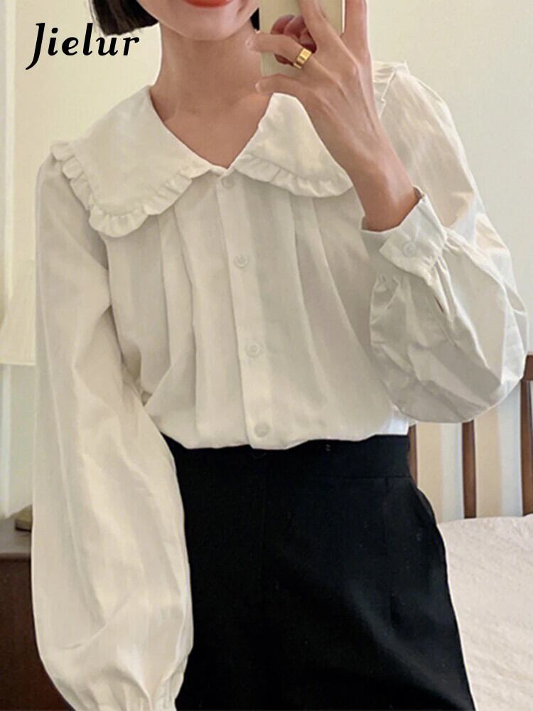 送料無料 Jielur 夏無地スリム女性シャツ甘いルーズシャツ女性白シンプルなベーシックシックなトップ ホワイト 大人ガーリー スウィート キュート カジュアル サマー 夏物 ソリッドカラー AE12188787847325045157