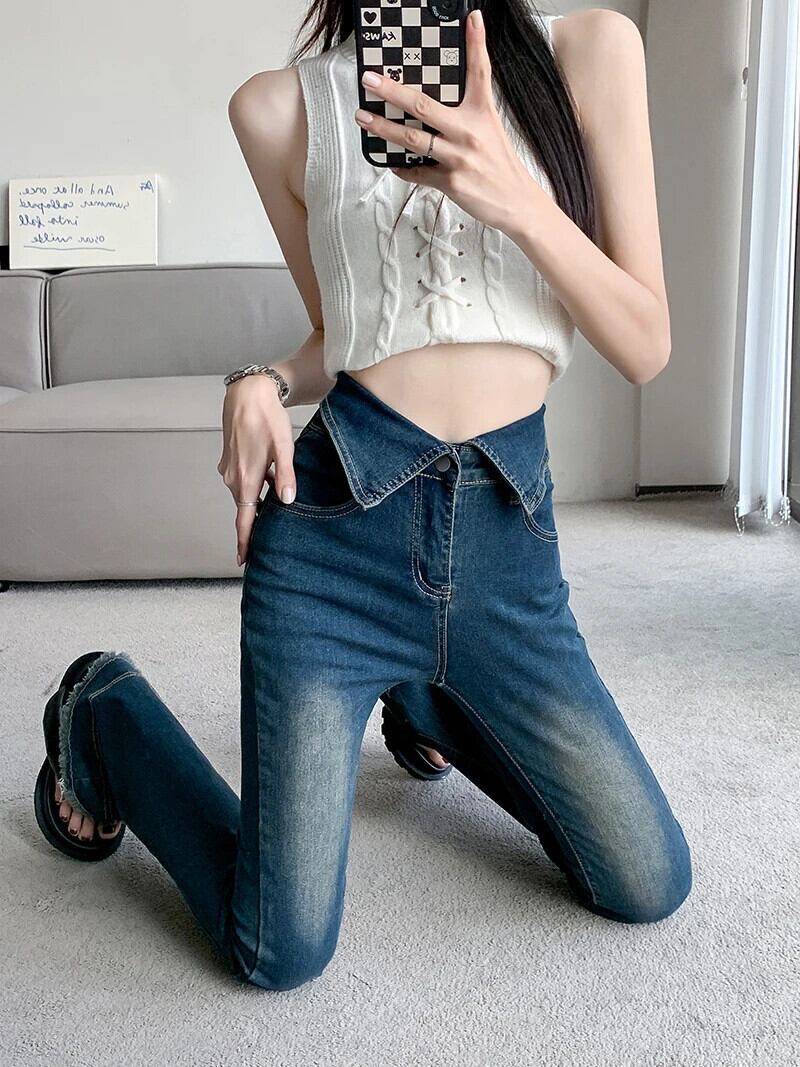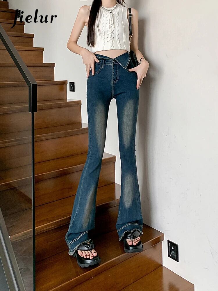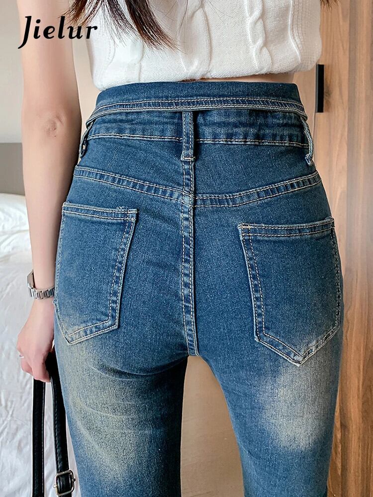 送料無料 Jielur 夏セクシーなスリム女性のジーンズヴィンテージウエスト若いジーンズ女性ブルーシンプルなストリート Chicly パンツ サマー 夏物 ビンテージ AE12188787888253719360