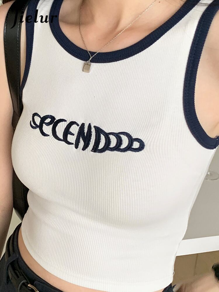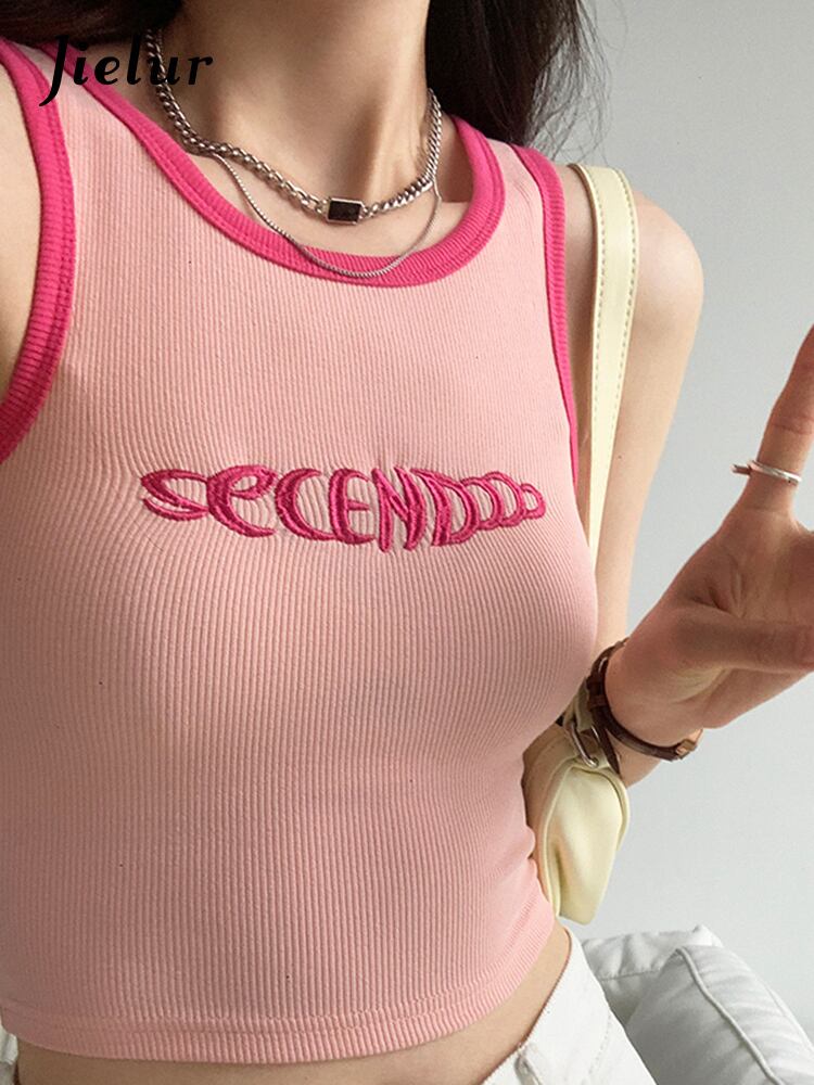 送料無料 Jielur 夏セクシーなスウィートチクリタンク女性スリムシンプルベーシックタンクコントラストカラーインノースリーブトップ 大人ガーリー キュート カジュアル サマー 夏物 AE12188787815243792517
