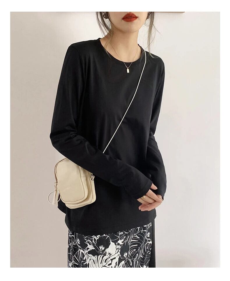 送料無料 Jielur 長袖黒、白 Tシャツルーズ O ネックコットン Tシャツ基本ボトリングシャツ無地トップス女性 ロング ホワイト ブラック Oネック ソリッドカラー AE12188787831511698714