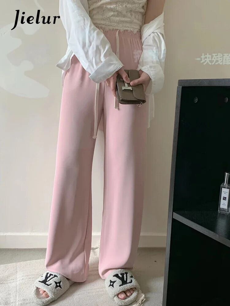 送料無料 Jielur 春夏ウエストスリムフィットルーズワイドレッグレディースパンツ無地優しいベーシックスポーツパンツ スプリング 春物 サマー 夏物 ワイドパンツ ソリッドカラー AE12188787869155778128