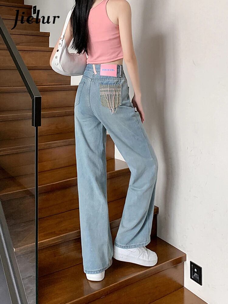 送料無料 Jielur 夏ウエストスリムレディースジーンズシンプルベーシックシックジーンズ女性ブルーストリートヤングパンツ サマー 夏物 AE12188787897066728634