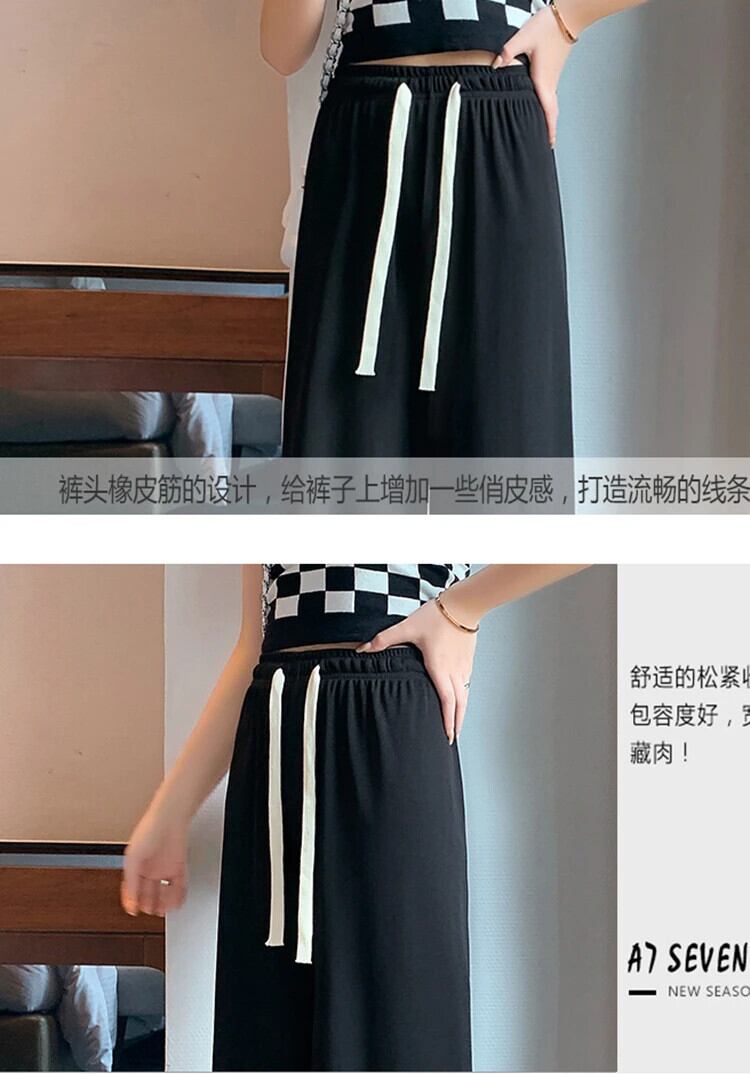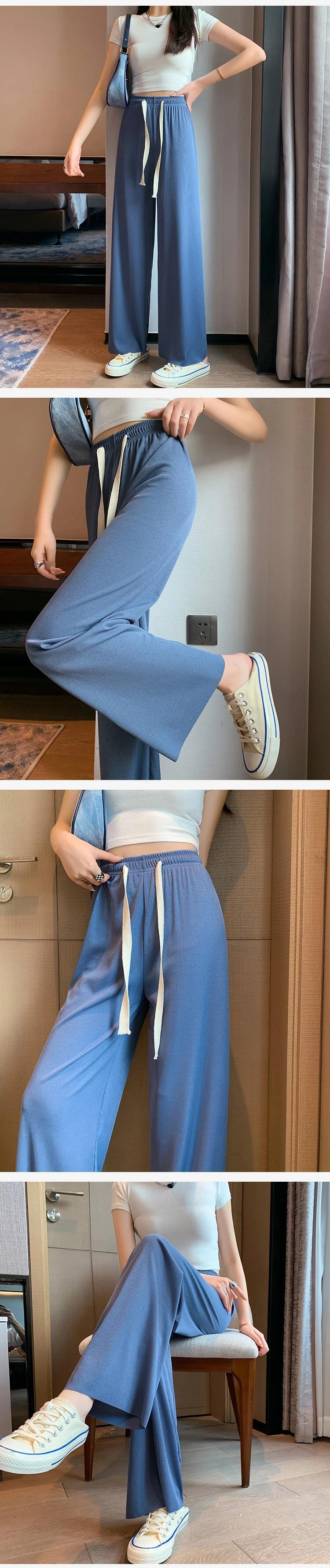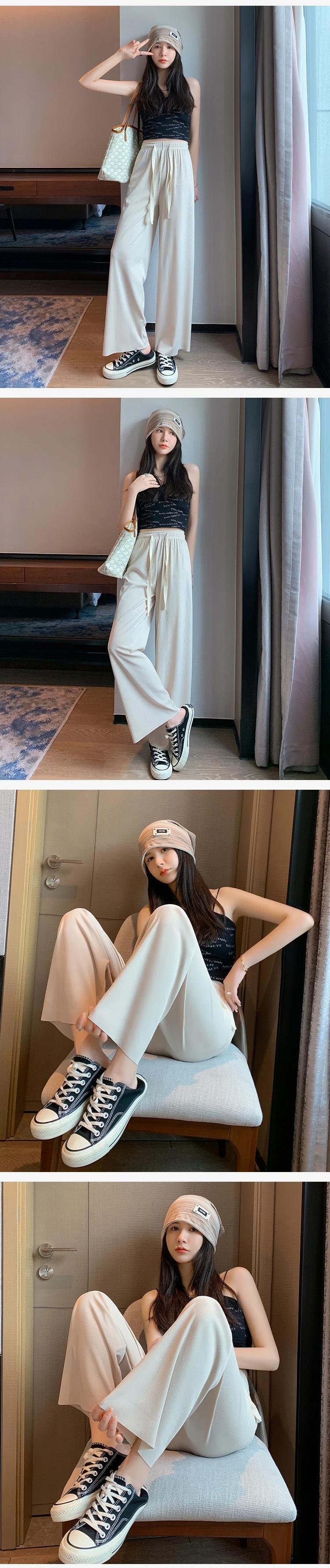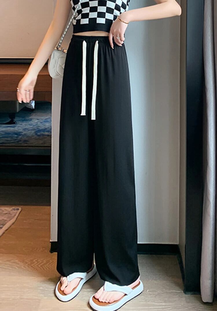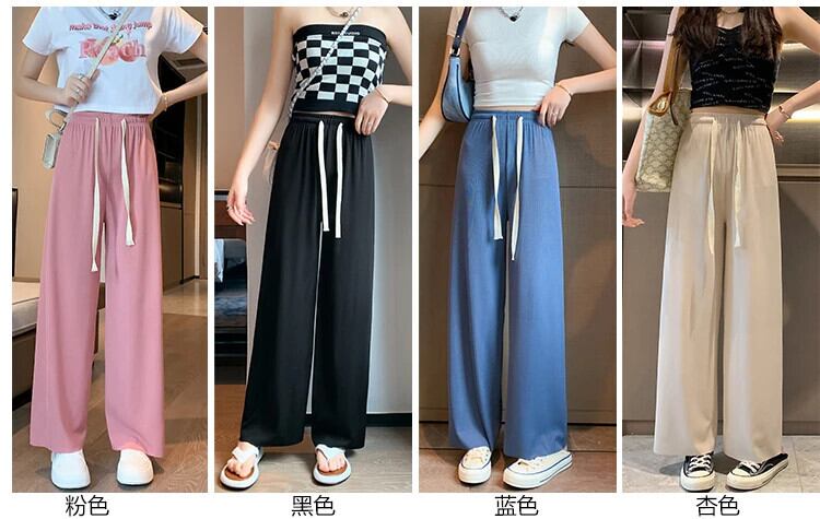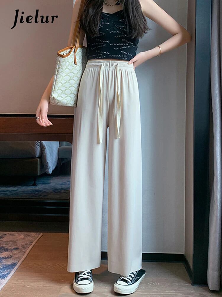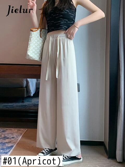 送料無料 Jielur アイスシルクワイドレッグ女性パンツ夏薄いルーズストレートピンクズボンアプリコットブルー黒スウェットパンツ M-XXL ブラック サマー 夏物 ワイドパンツ AE1218878783676865595