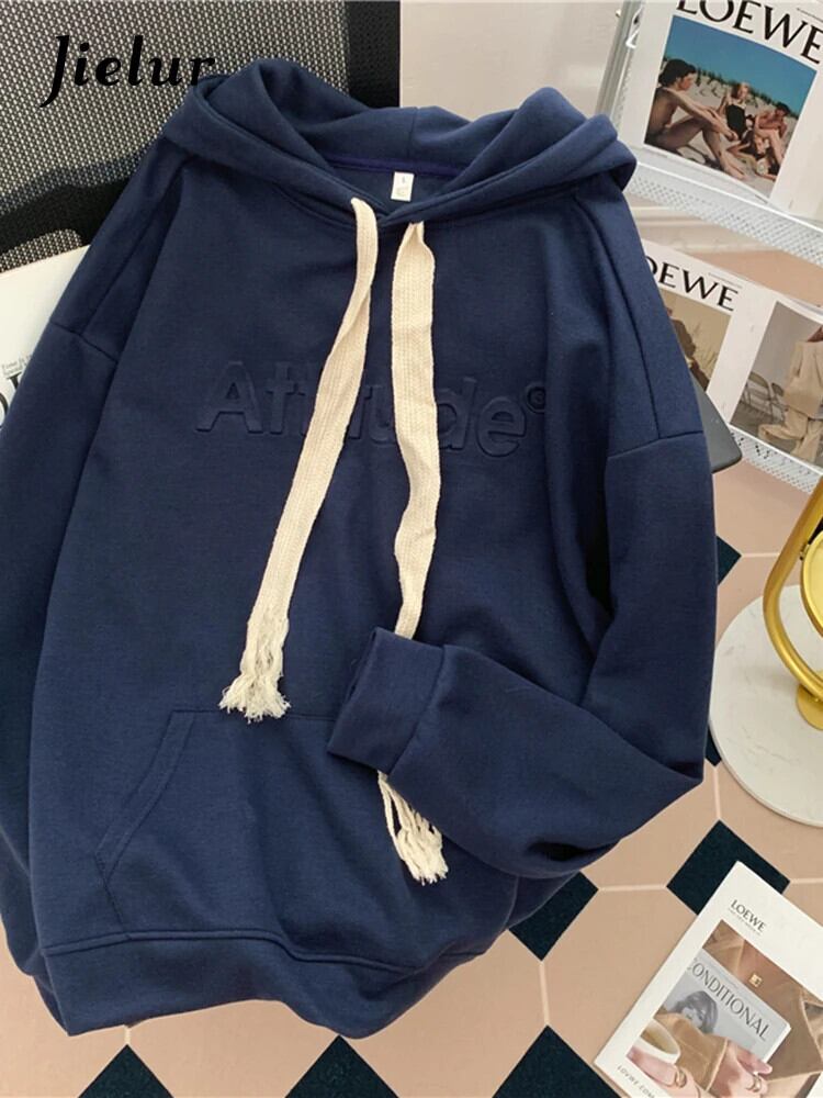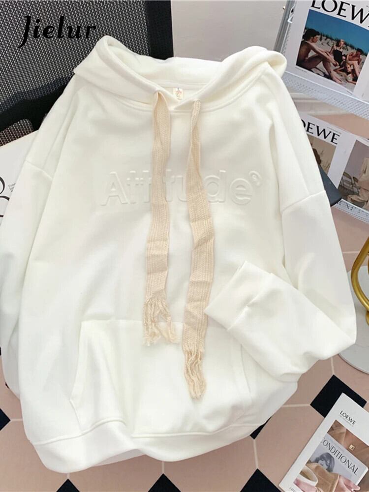 送料無料 Jielur 秋無地スリムパーカー女性ルーズシンプルなパーカー白赤青ベーシックストリートニットトップ ホワイト レッド ブルー オータム 秋物 ソリッドカラー AE12188787825819698914