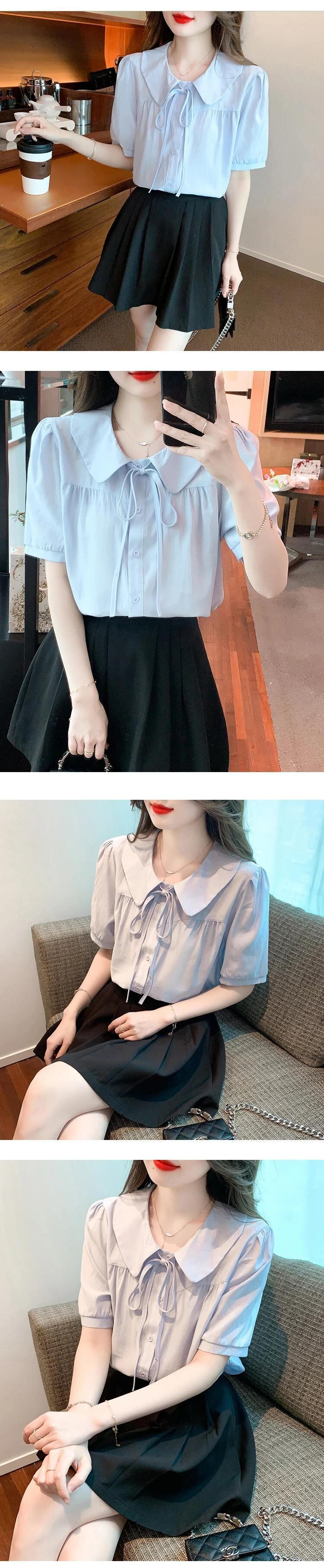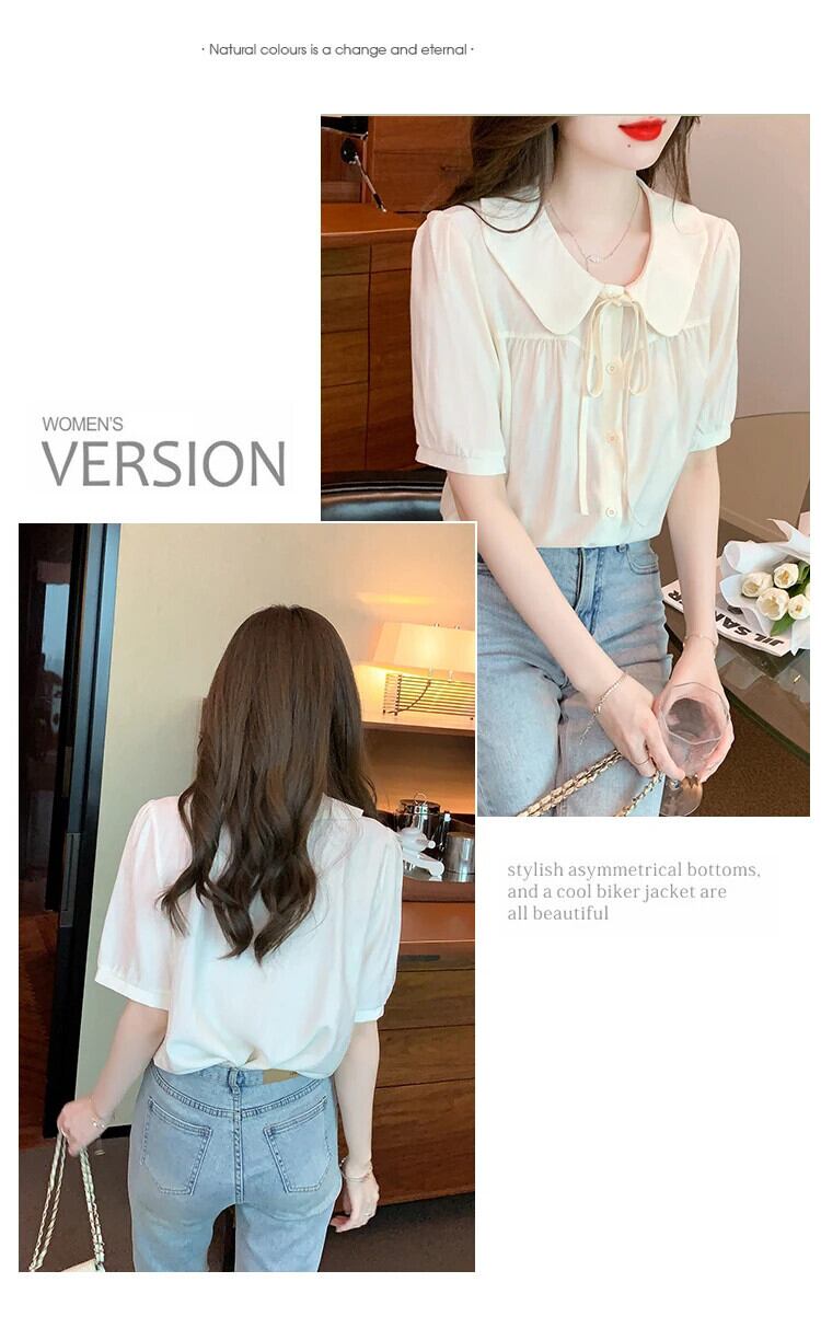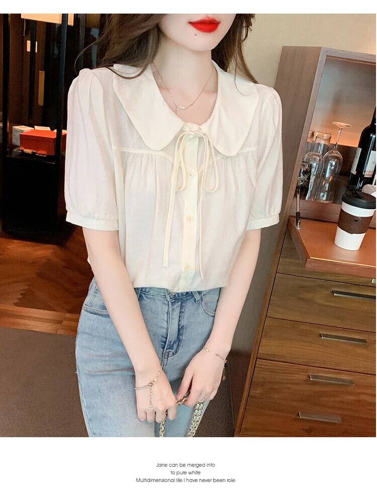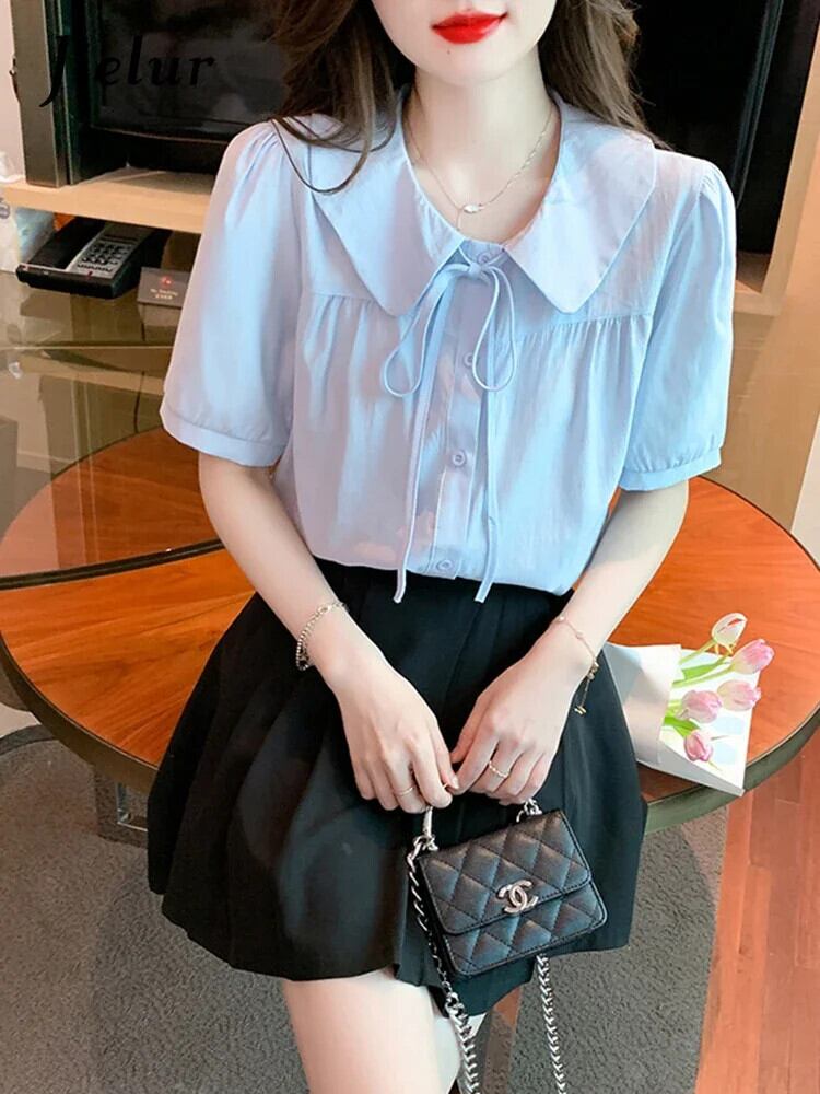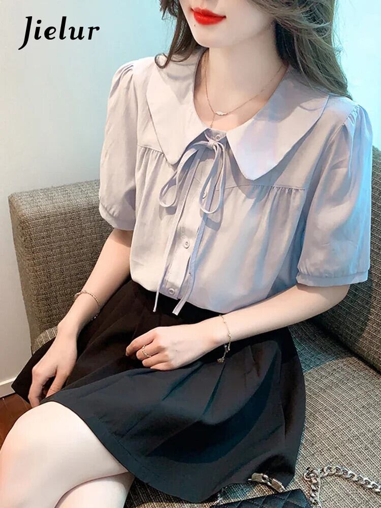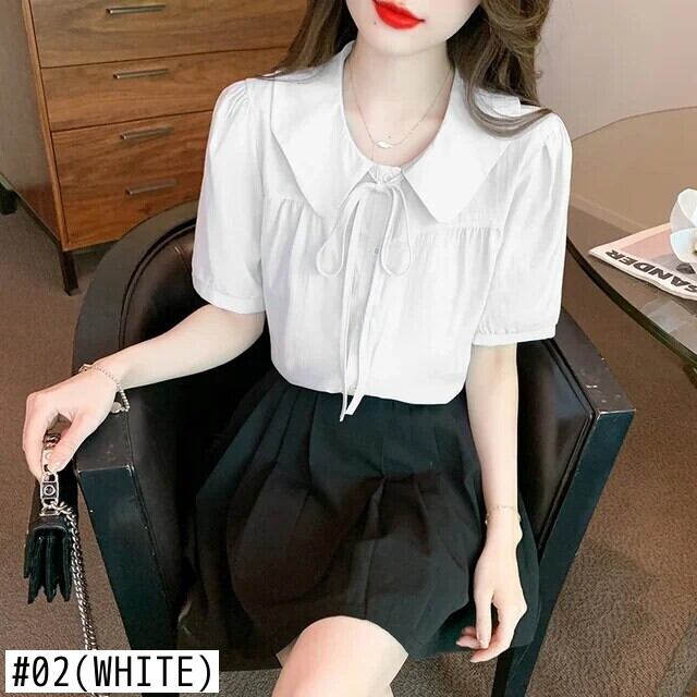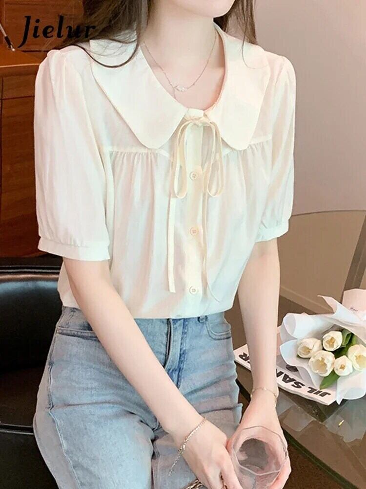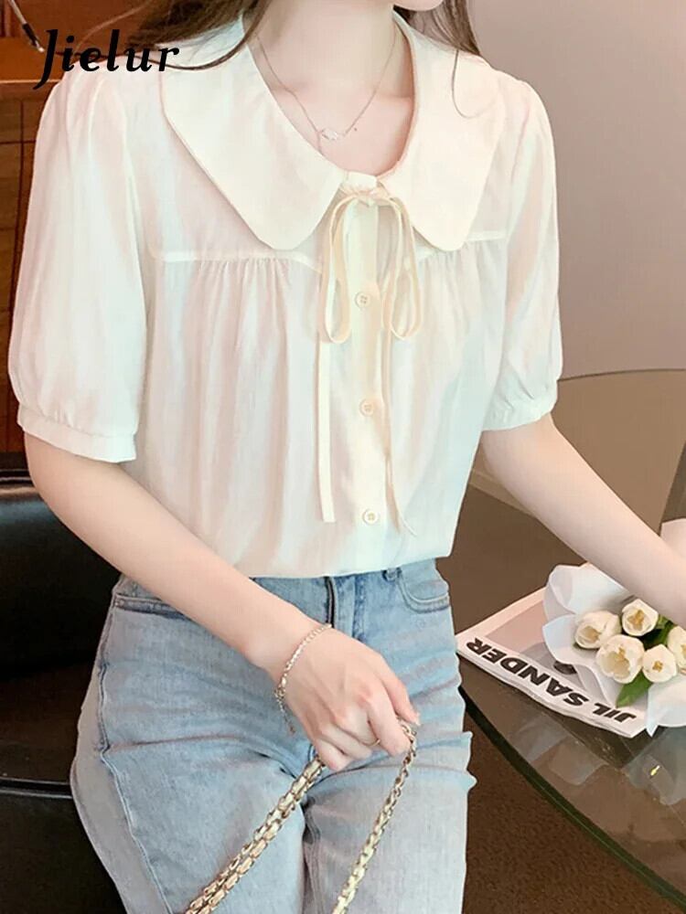 送料無料 Jielur 夏緩い甘い女性シャツ甘い無地シャツ女性白アプリコットブルーパフスリーブトップ ホワイト 大人ガーリー スウィート キュート カジュアル サマー 夏物 ソリッドカラー AE12188787882243749415