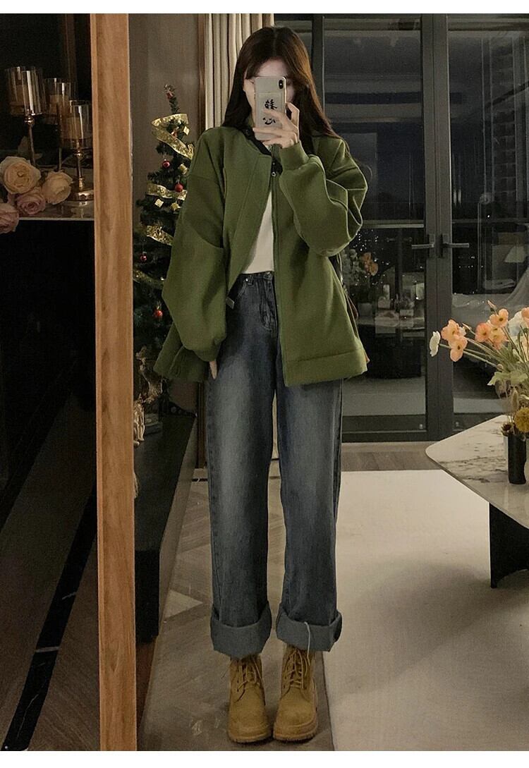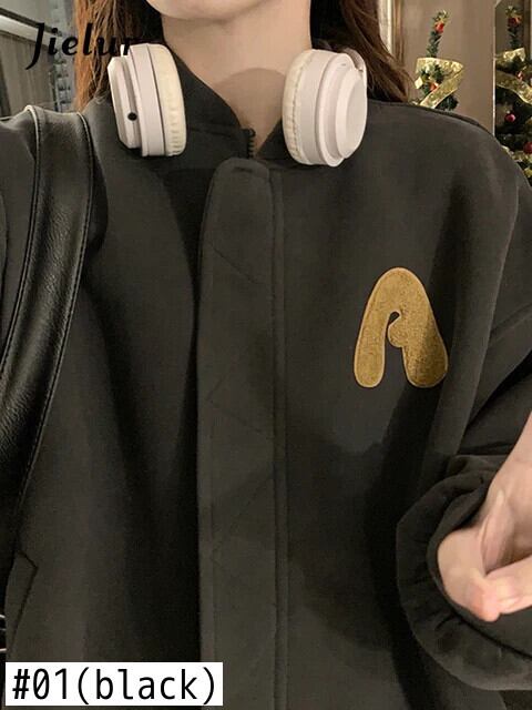 送料無料 Jielur 秋ルーズストリートジャケット女性スリムアメリカンジャケット黒緑ヴィンテージインシックトップ女性 ブラック オータム 秋物 グリーン ビンテージ AE12188787880895015584