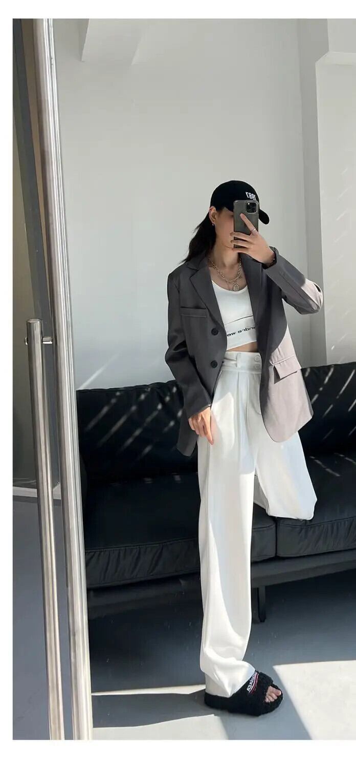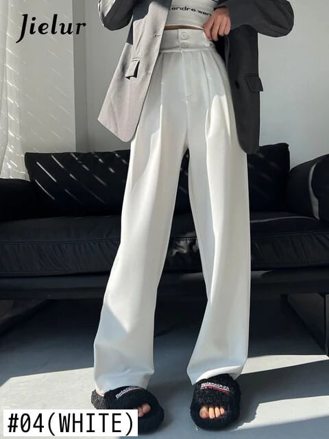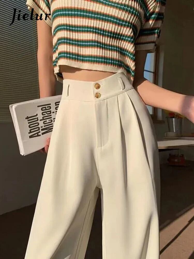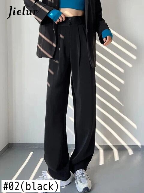 送料無料 Jielur ソリッドオフィススタイルスーツパンツ女性ボタンウエストパンツポケットルーズワイドレッグパンツ ソリッドカラー 会社 学校 通勤や通学にも AE12188787863680351022