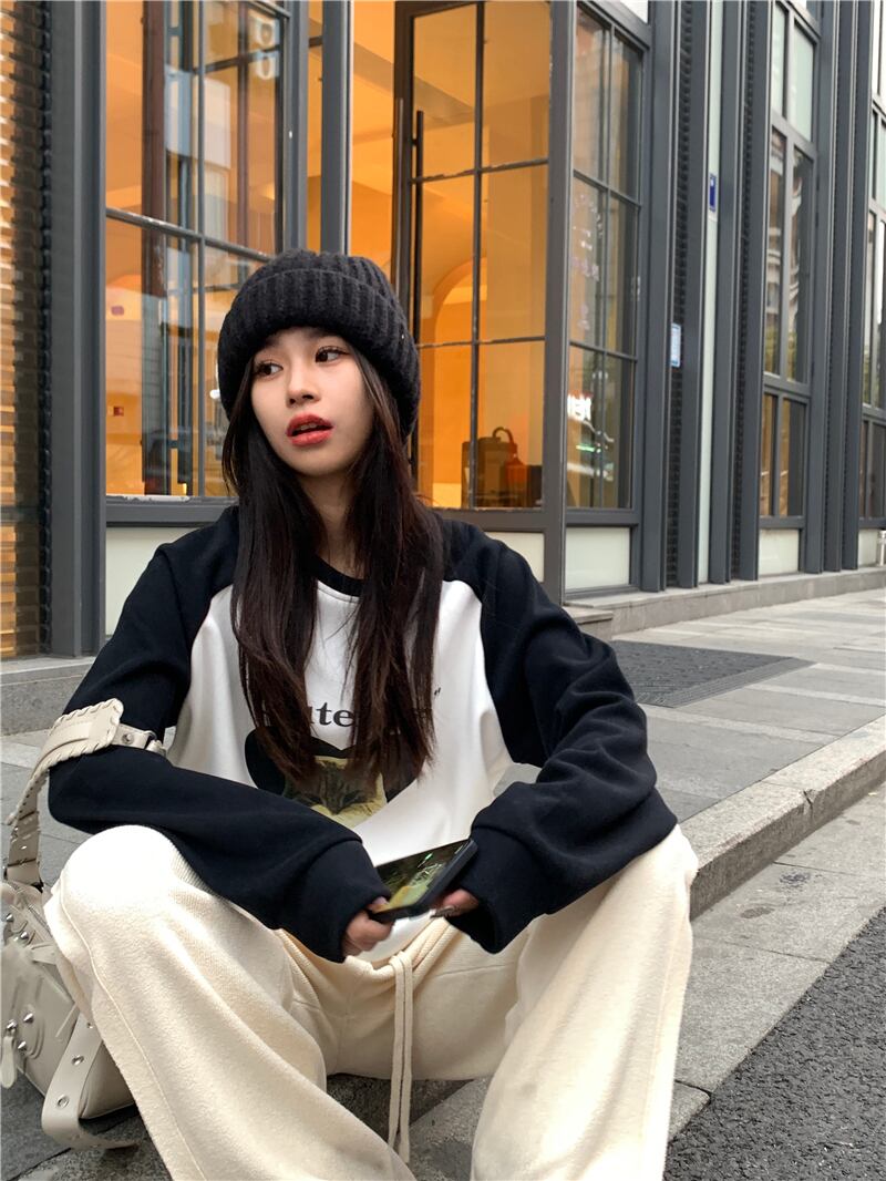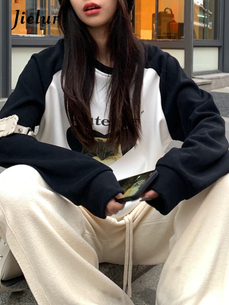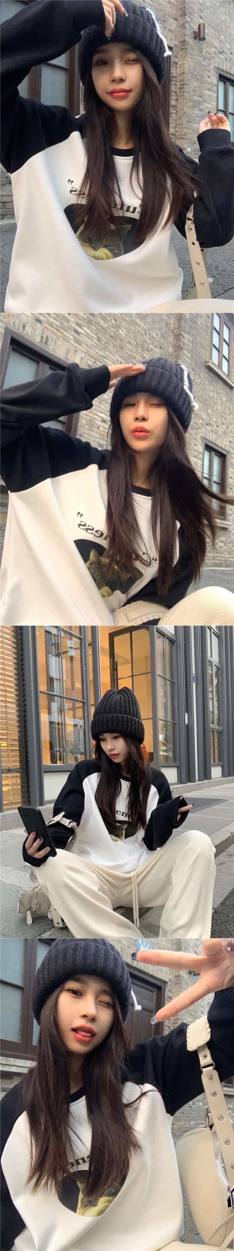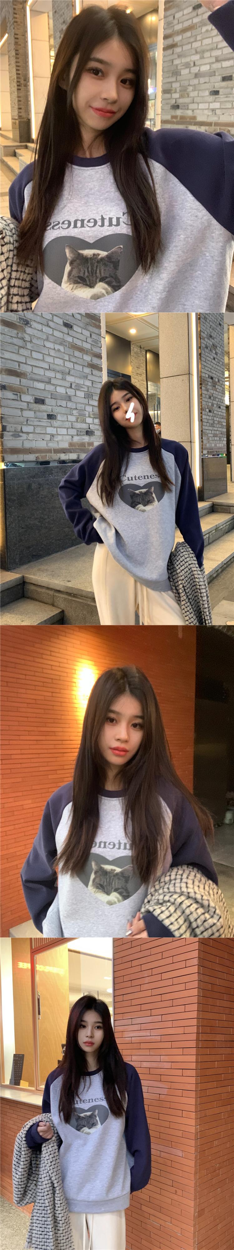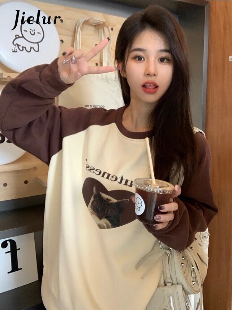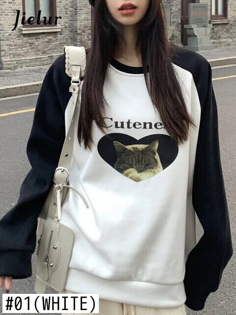 送料無料 Jielur ヴィンテージスペルカラー黒トレーナー女性秋冬ベルベット O ネックかわいい猫プリント女性パーカープルオーバー ブラック 大人ガーリー スウィート キュート カジュアル オータム 秋物 ウィンター 冬物 Oネック ビンテージ AE12188787869767009907