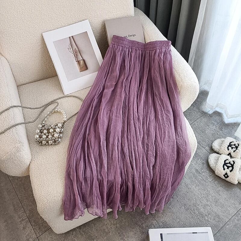 送料無料 Jielur 夏ウエスト A ラインレディーススカート無地シンプルスカートパープル甘いスカート 大人ガーリー スウィート キュート カジュアル サマー 夏物 Aライン ソリッドカラー AE12188787812119760505