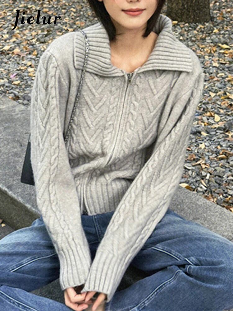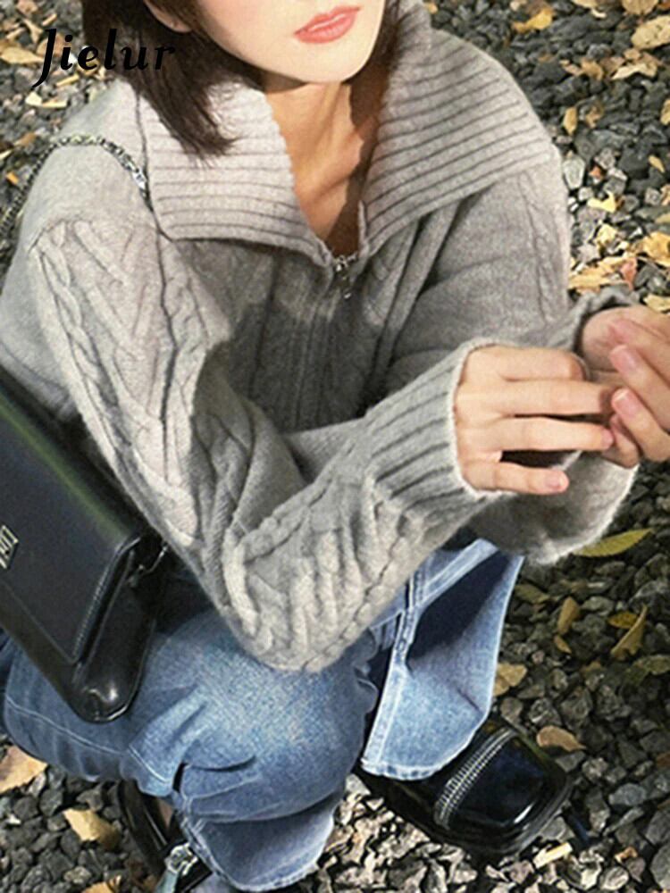 送料無料 Jielur 秋無地スリム女性カーディガンルーズベーシックカーディガン女性グレーストリートシックなニットトップ オータム 秋物 ソリッドカラー AE12188787884526046648