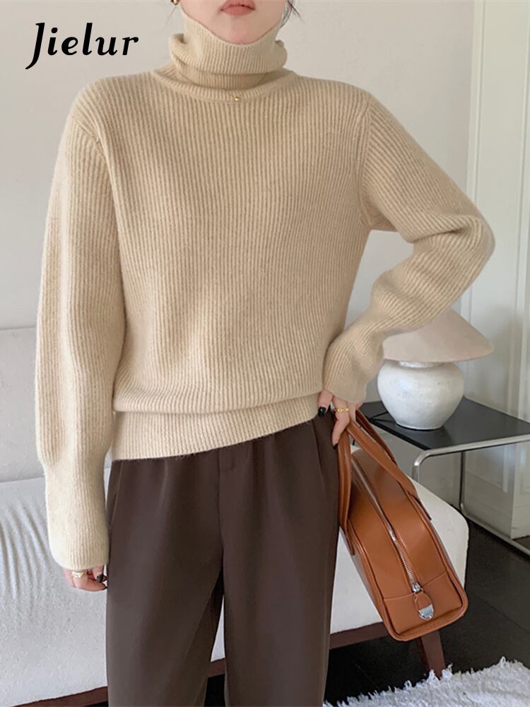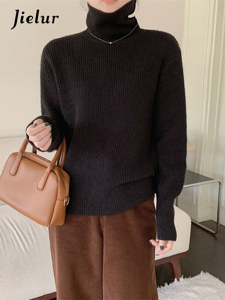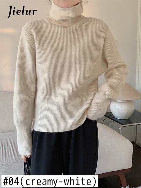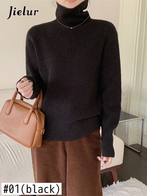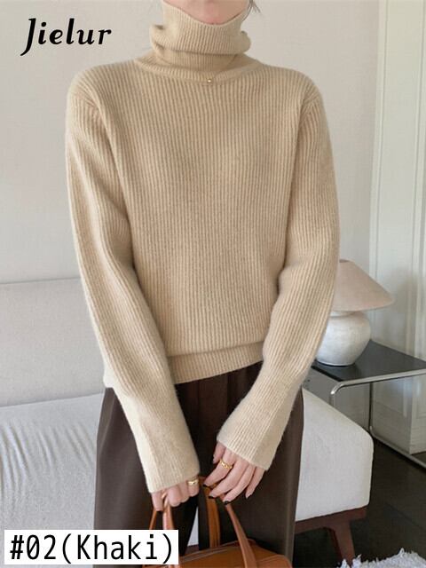 送料無料 Jielur ウールタートルネック女性セーターソフトニットベーシックプルオーバールーズ暖かいニットベージュ黒カーキセーター ブラック AE12188787856312037561