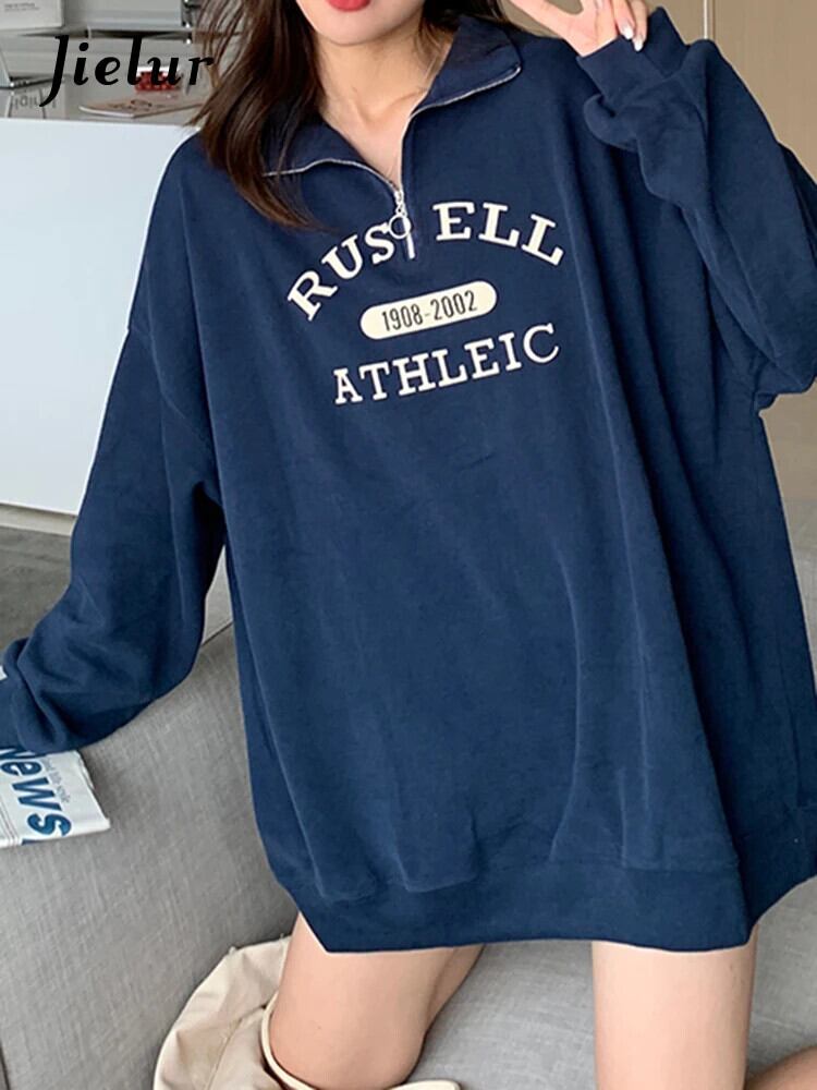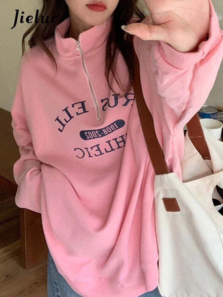 送料無料 Jielur ルースパーカースリム女性シンプルなベーシックシンプルな女性パーカー秋ネイビーブルーピンク Chicly トップ オータム 秋物 AE12188787833866066902