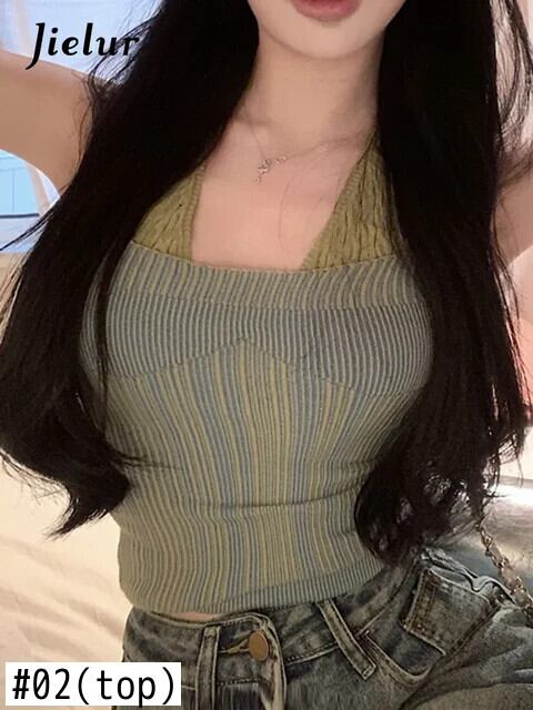送料無料 Jielur 夏シックな女性のジーンズストリートウエストジーンズ女性無地スリムシンプルなトップ サマー 夏物 ソリッドカラー AE12188787893556618166