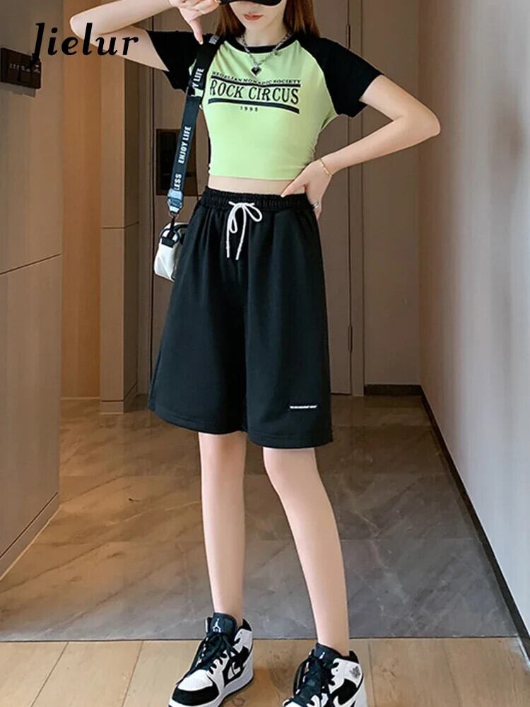 送料無料 Jielur 夏ルーズウエストレディースショーツ巾着スポーツアメリカンショーツホワイトライトグレーブラックショーツ サマー 夏物 ブルマー AE12188787817848132486