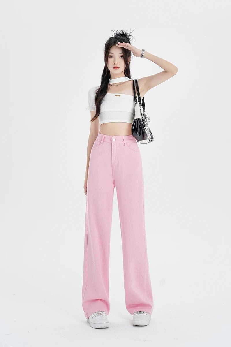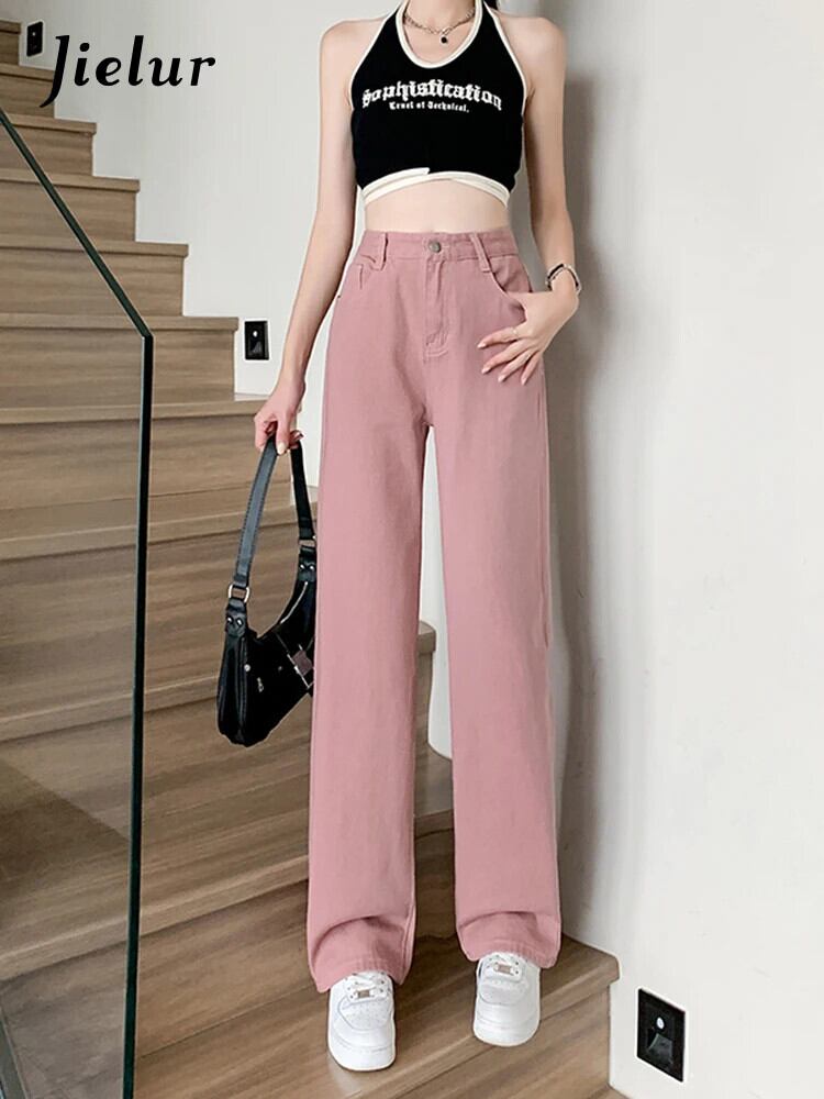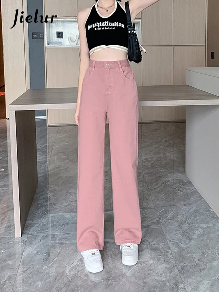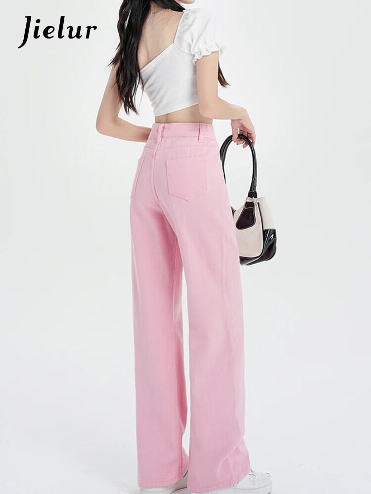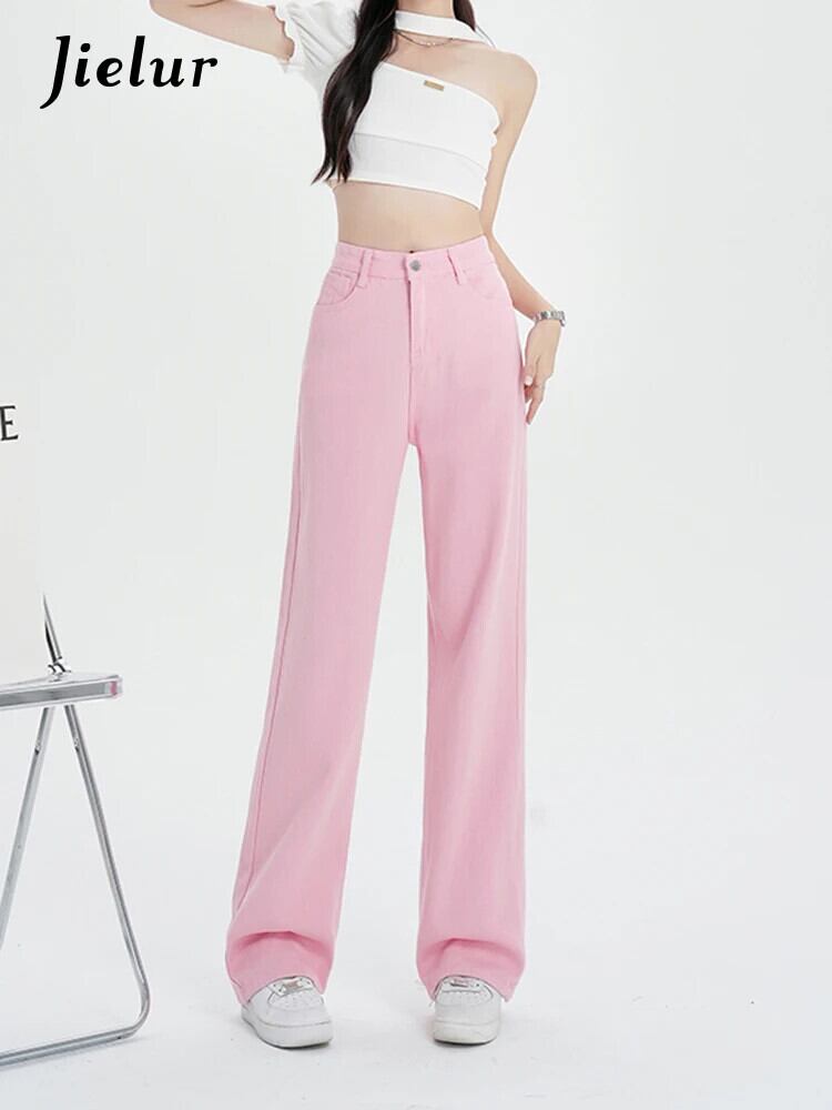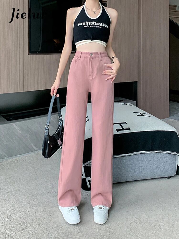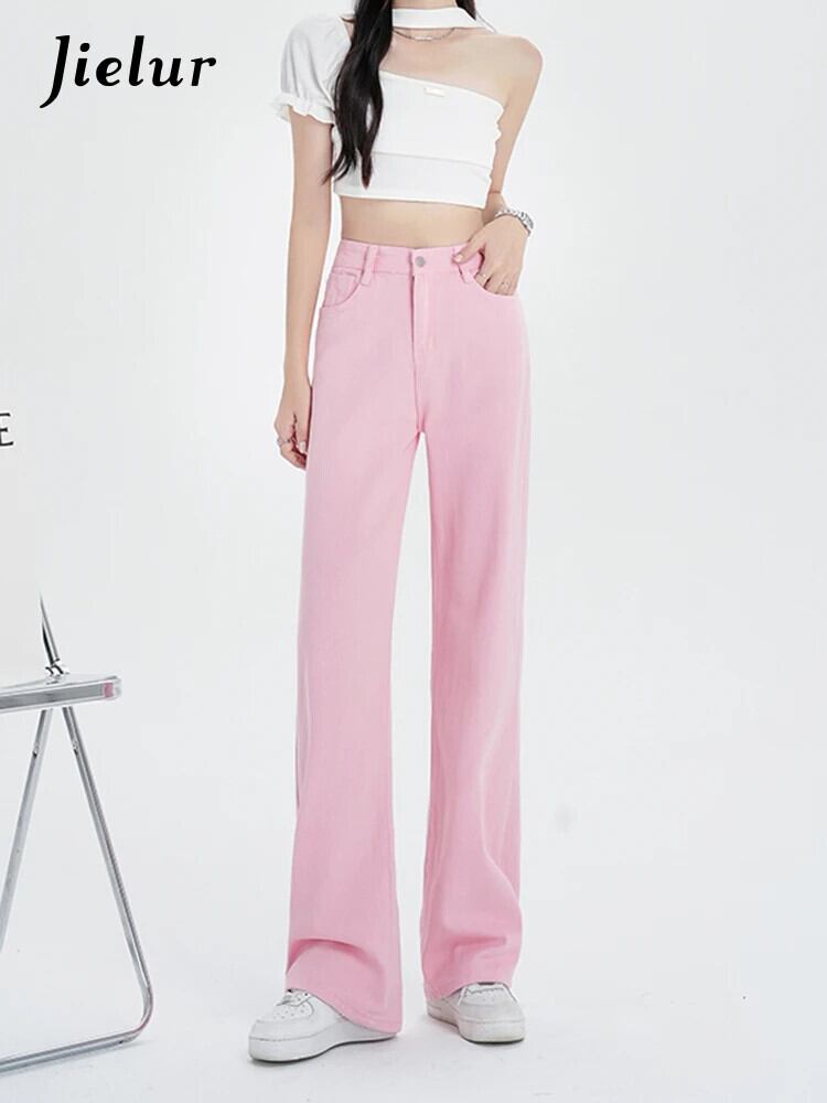 送料無料 Jielur 夏ウエストの女性のジーンズスリムソリッドカラー若いジーンズ女性ピンクストリートシックなパンツ サマー 夏物 AE12188787839544413890