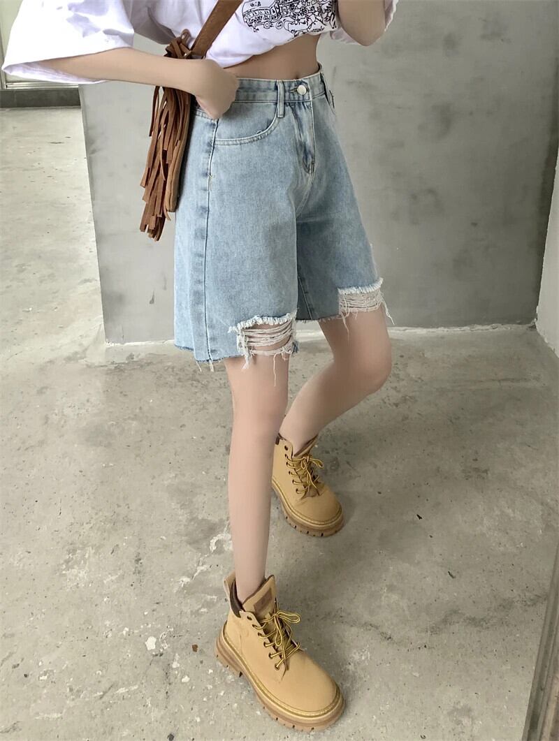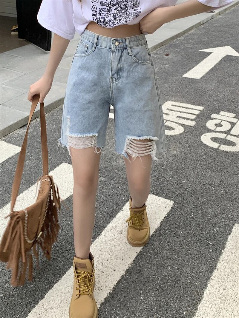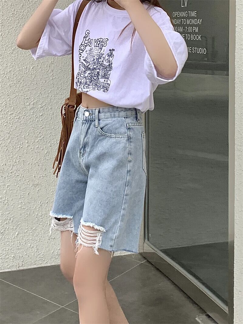 送料無料 Jielur 夏ウエスト穴デニム女性のジーンズルーズスリムベーシックショートパンツブルーライト若いジーンズ女性 サマー 夏物 ショーツ ブルマー AE12188787830613255961