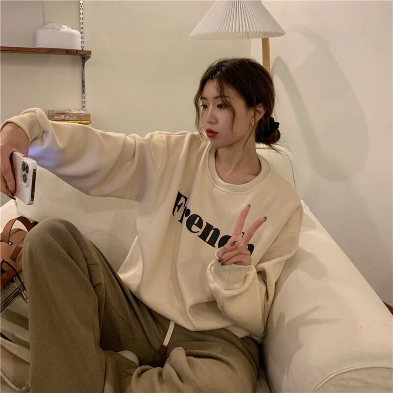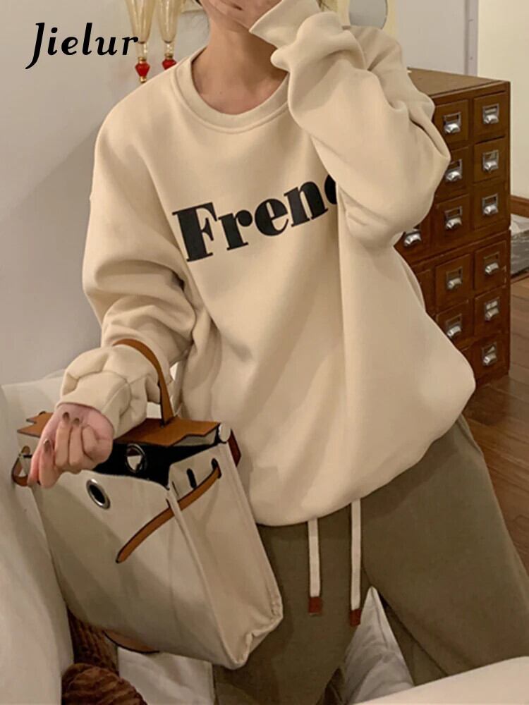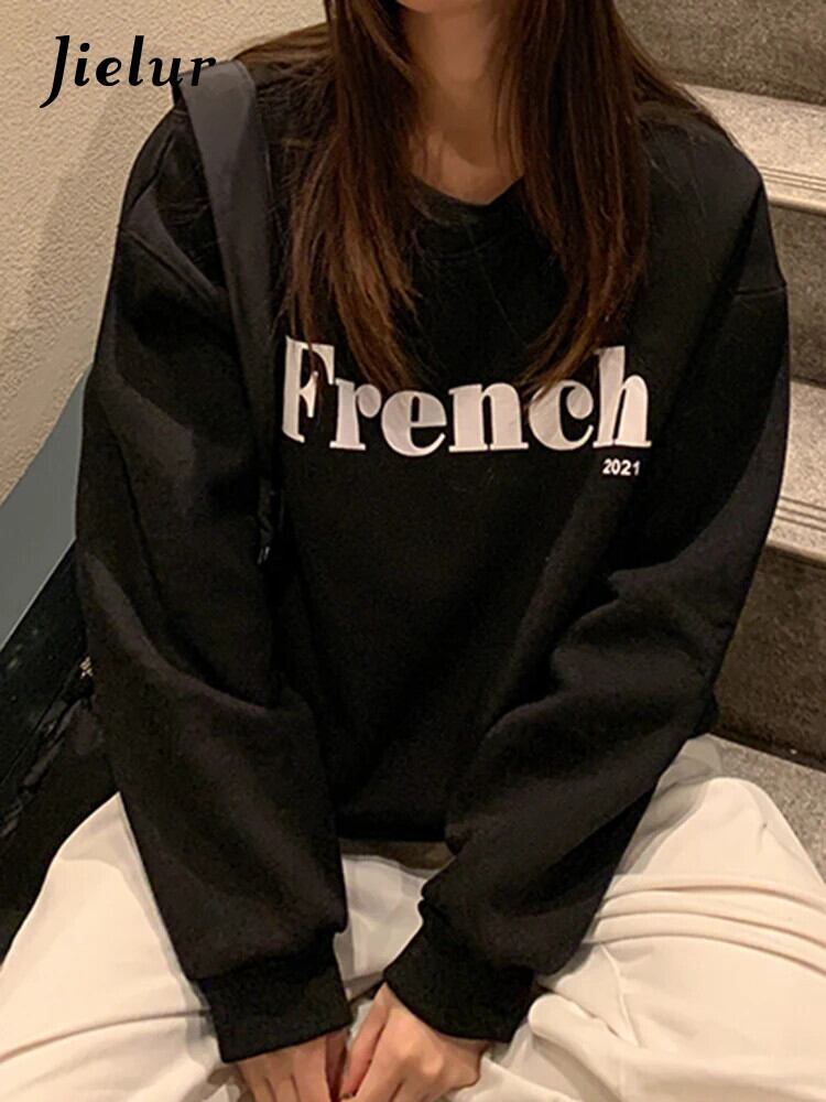 送料無料 Jielur 秋ルーズ女性パーカーシンプルなベーシックパーカー女性アプリコット黒、白ストリート Chicly トップ ホワイト ブラック オータム 秋物 AE12188787897600131309