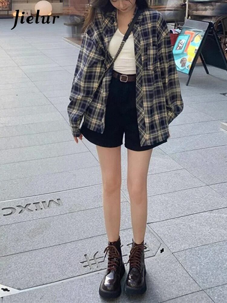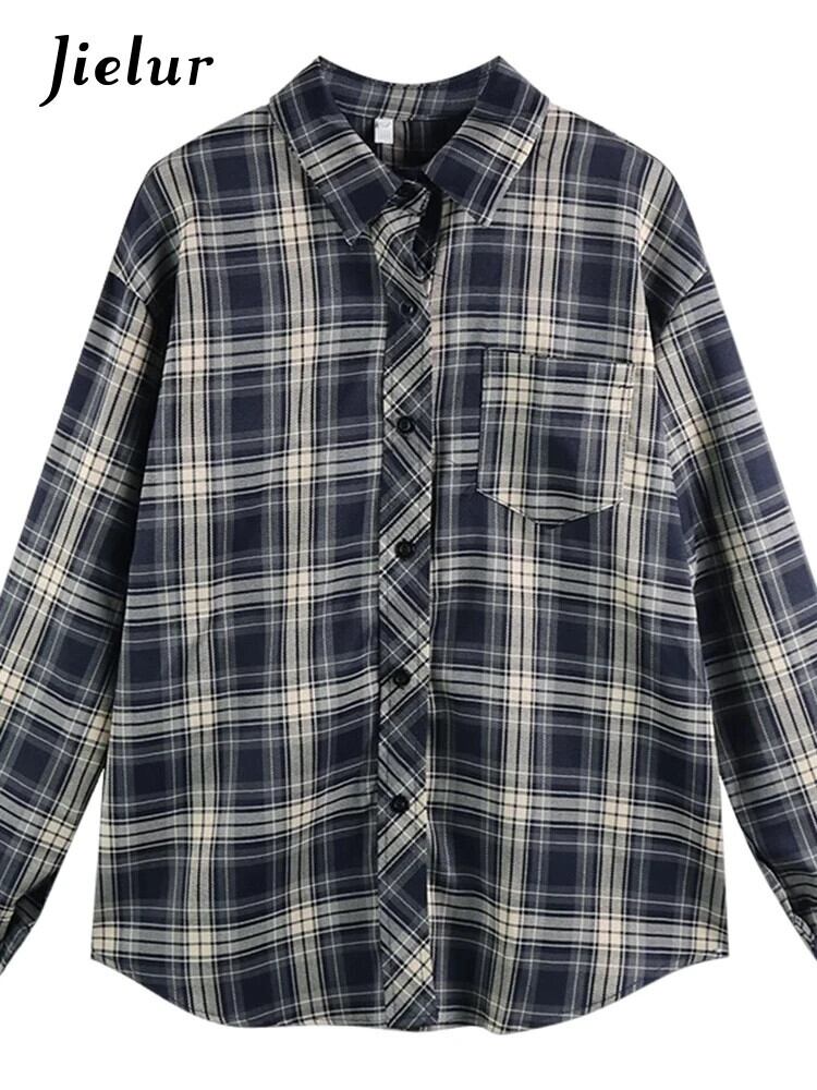 送料無料 Jielur レトロ春シックな女性シャツルーズストリート女性シャツコントラストカラースリム長袖トップ ロング スプリング 春物 AE12188787869855022125