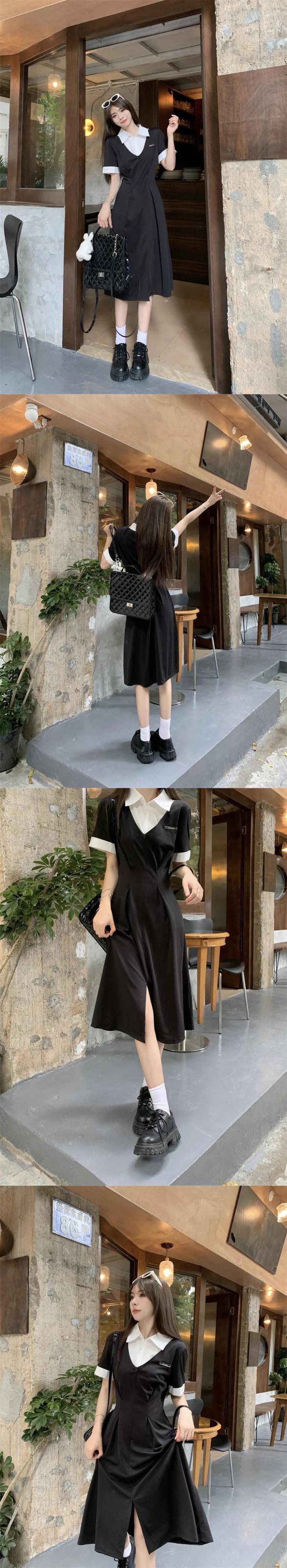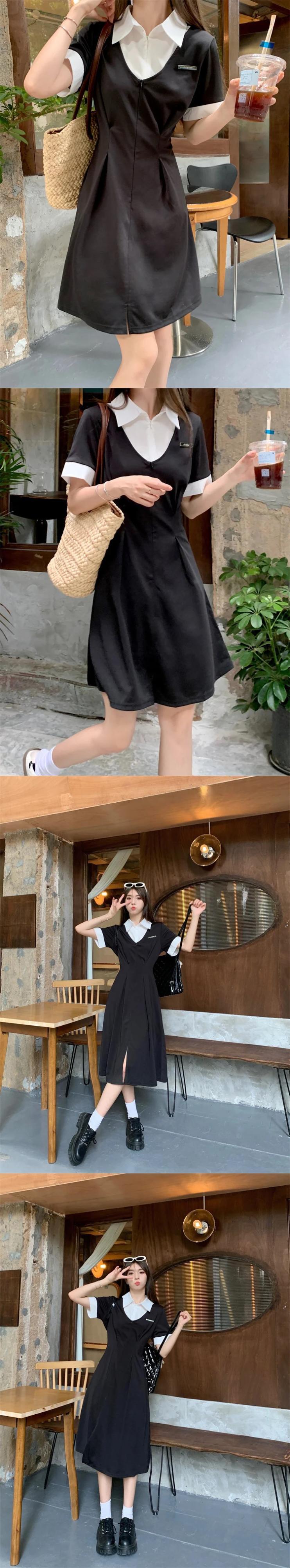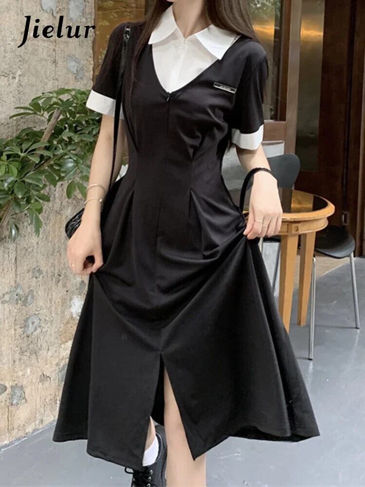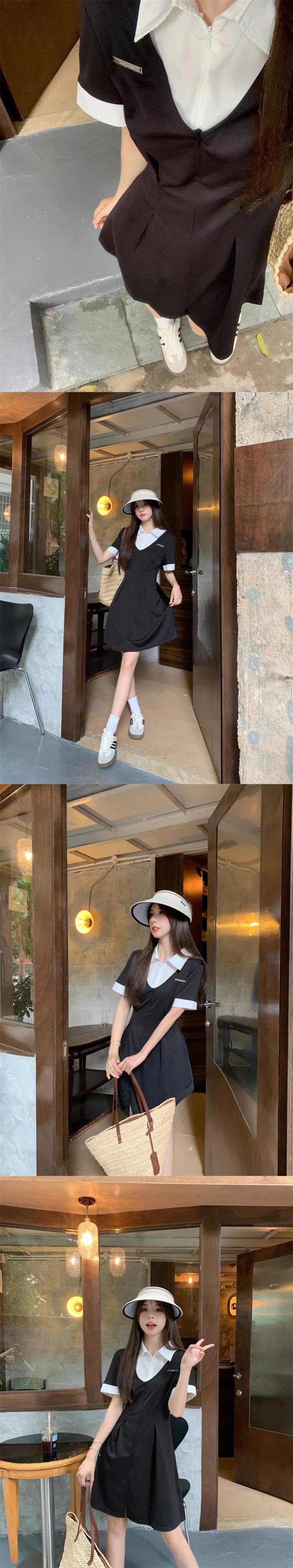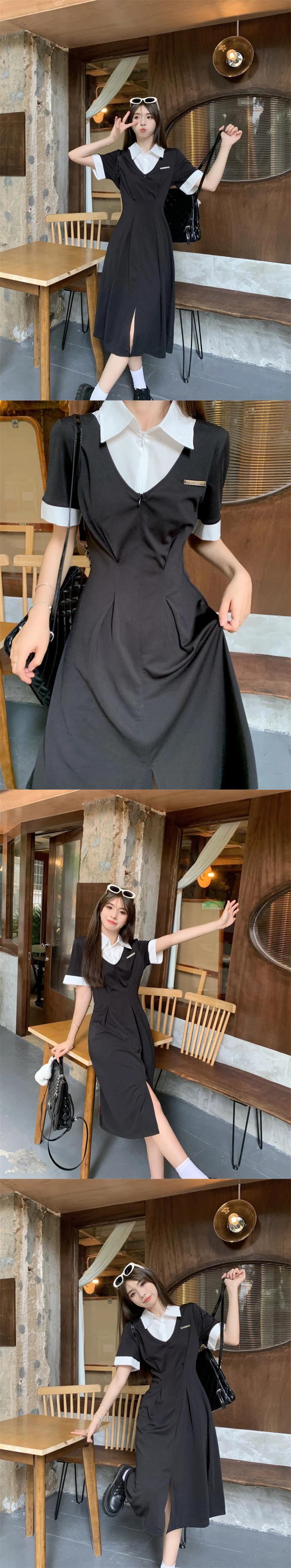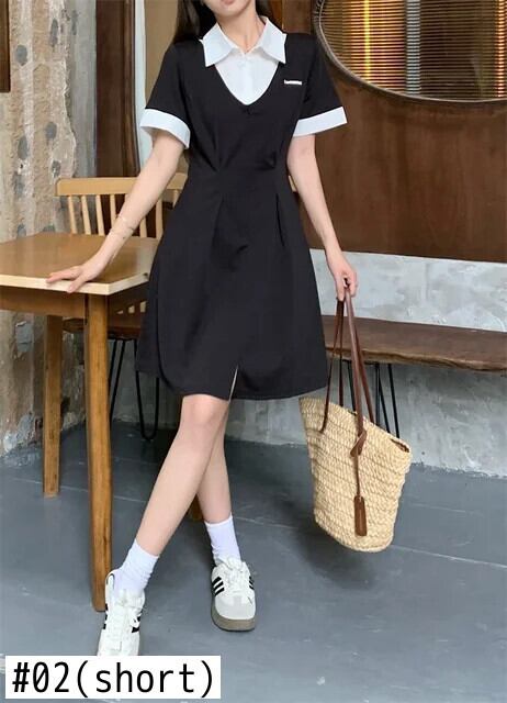 送料無料 Jielur 夏コントラストカラースリムレディースドレス偽ツーピースルーズドレス女性シンプルなストリートベーシックドレス サマー 夏物 AE1218878781218965721