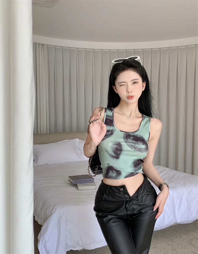 送料無料 Jielur タイダイアメリカンレトロスリム女性のキャミソールセクシーシックな甘いルーズキャミソール女性ストリートノースリーブトップ 大人ガーリー スウィート キュート カジュアル AE12188787856855006076
