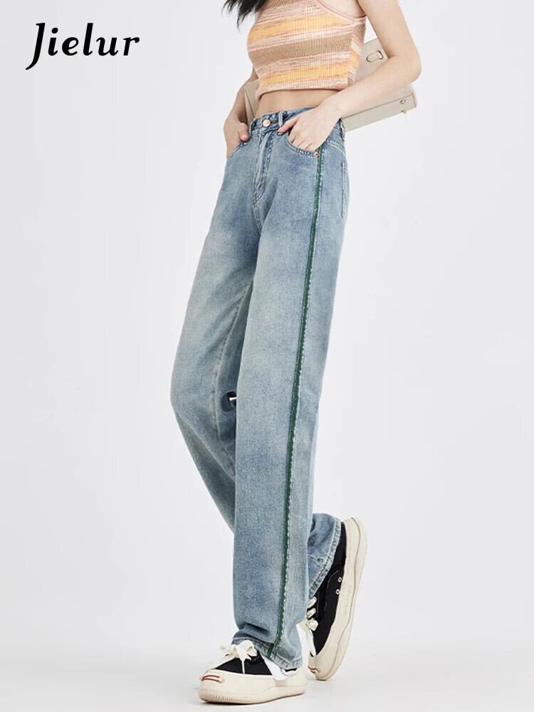 送料無料 Jielur 秋のコントラストカラースリムジーンズ女性シンプルベーシックストレート女性ジーンズルーズストリート Chicly パンツ オータム 秋物 AE12188787838000252385