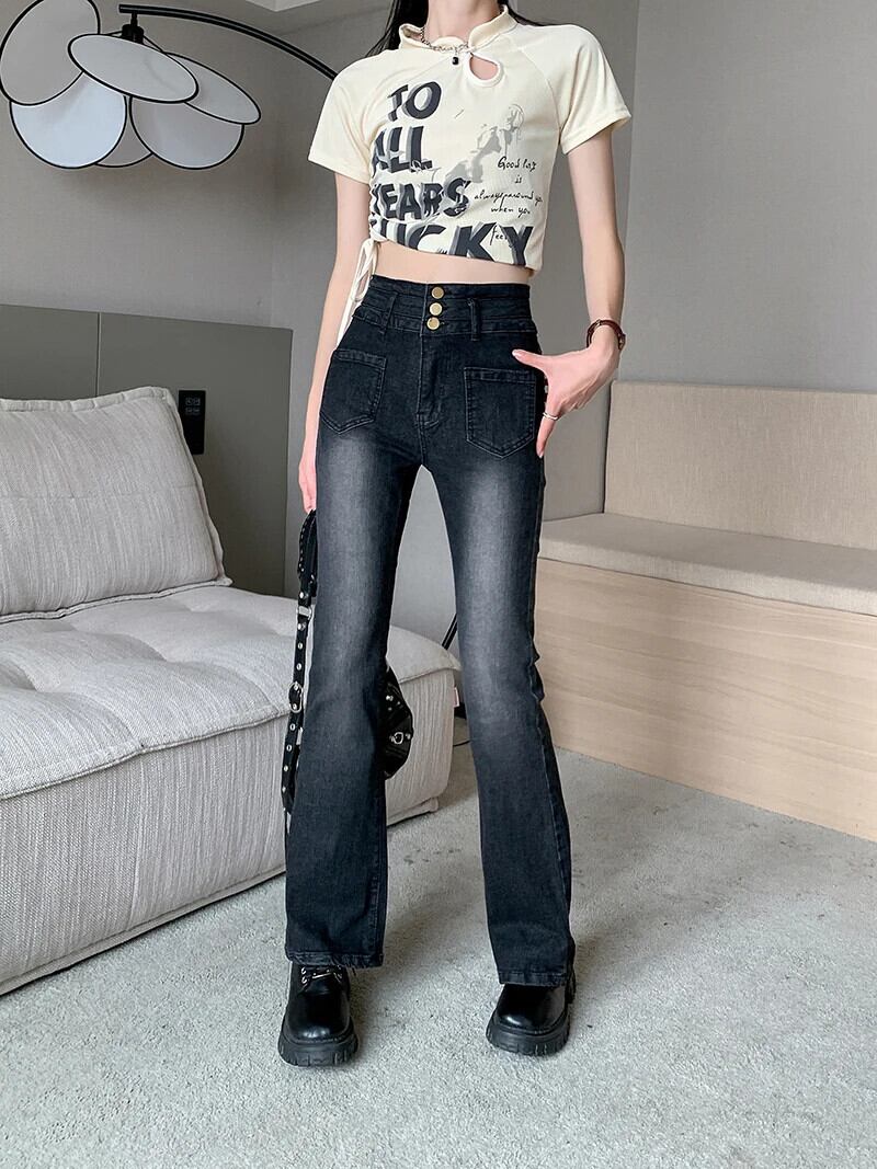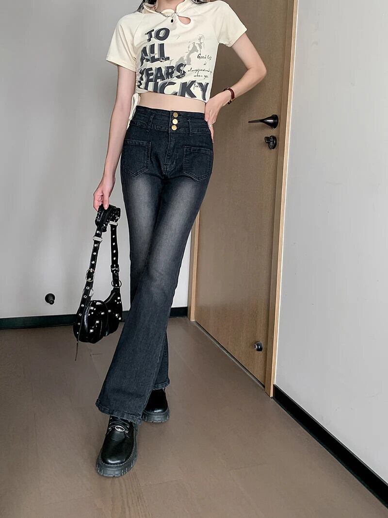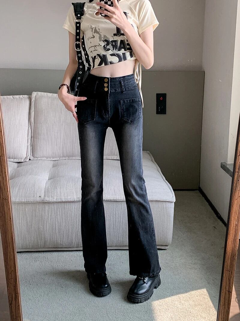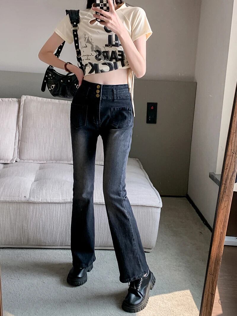 送料無料 Jielur 夏デニムパンツ女性スリムウエストジーンズ女性レトロスキニーストリート黒パンツ ブラック サマー 夏物 AE12188787868066660014