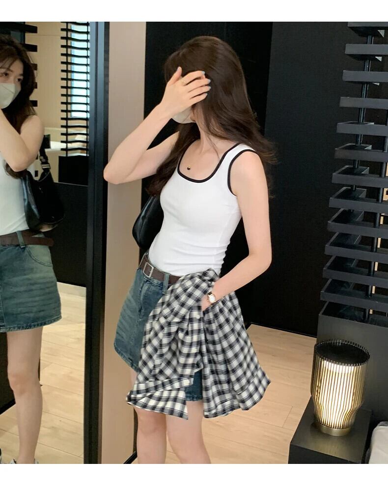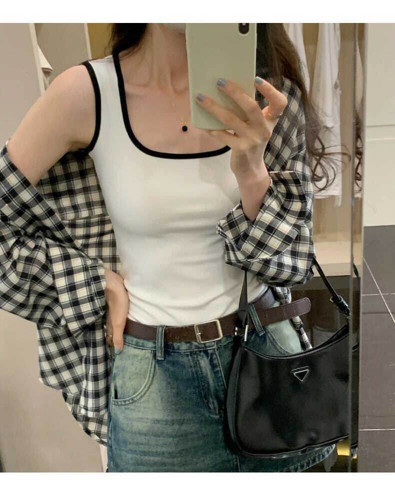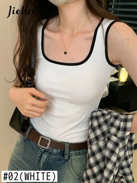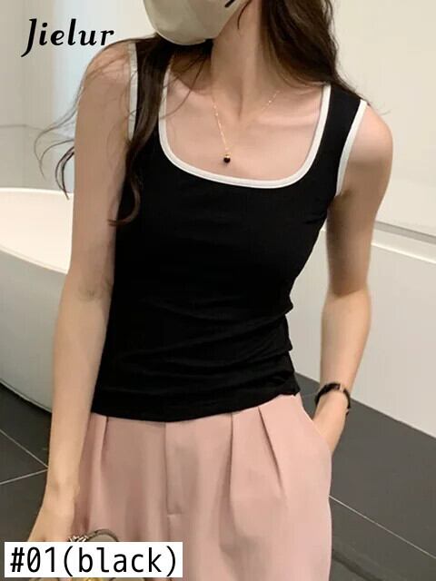送料無料 Jielur 夏のコントラストカラーのセクシーな女性のタンクトップスリムタンク女性トップ白黒アプリコットノースリーブトップ ホワイト ブラック サマー 夏物 AE121887878871561713