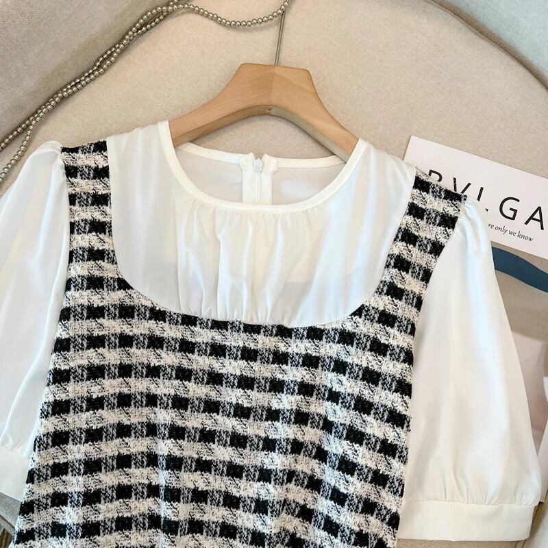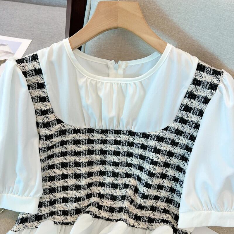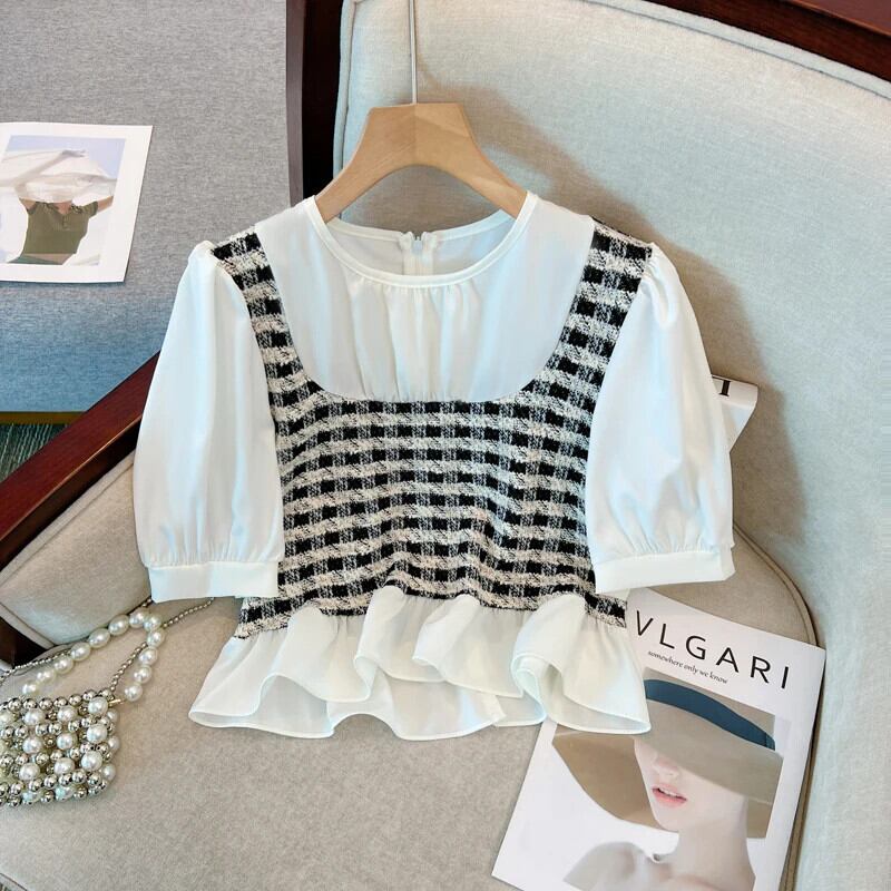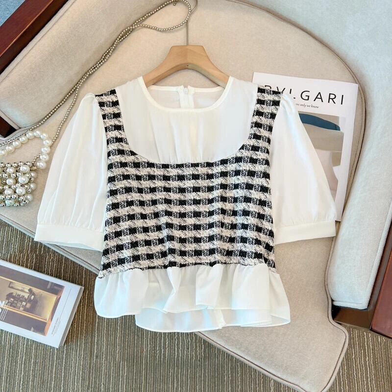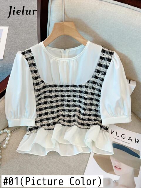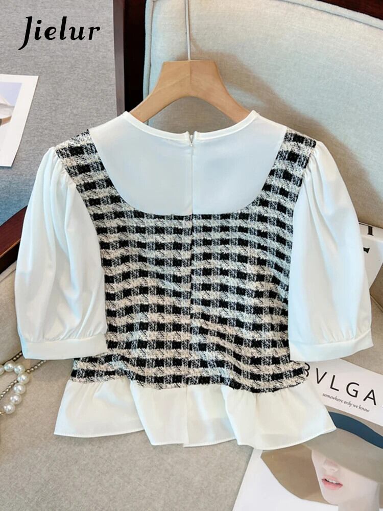 送料無料 Jielur 夏フレンチスリム偽ツーピース女性ブラウス甘いブラウス女性レトロパフスリーブトップ 大人ガーリー スウィート キュート カジュアル サマー 夏物 AE12188787846276202661