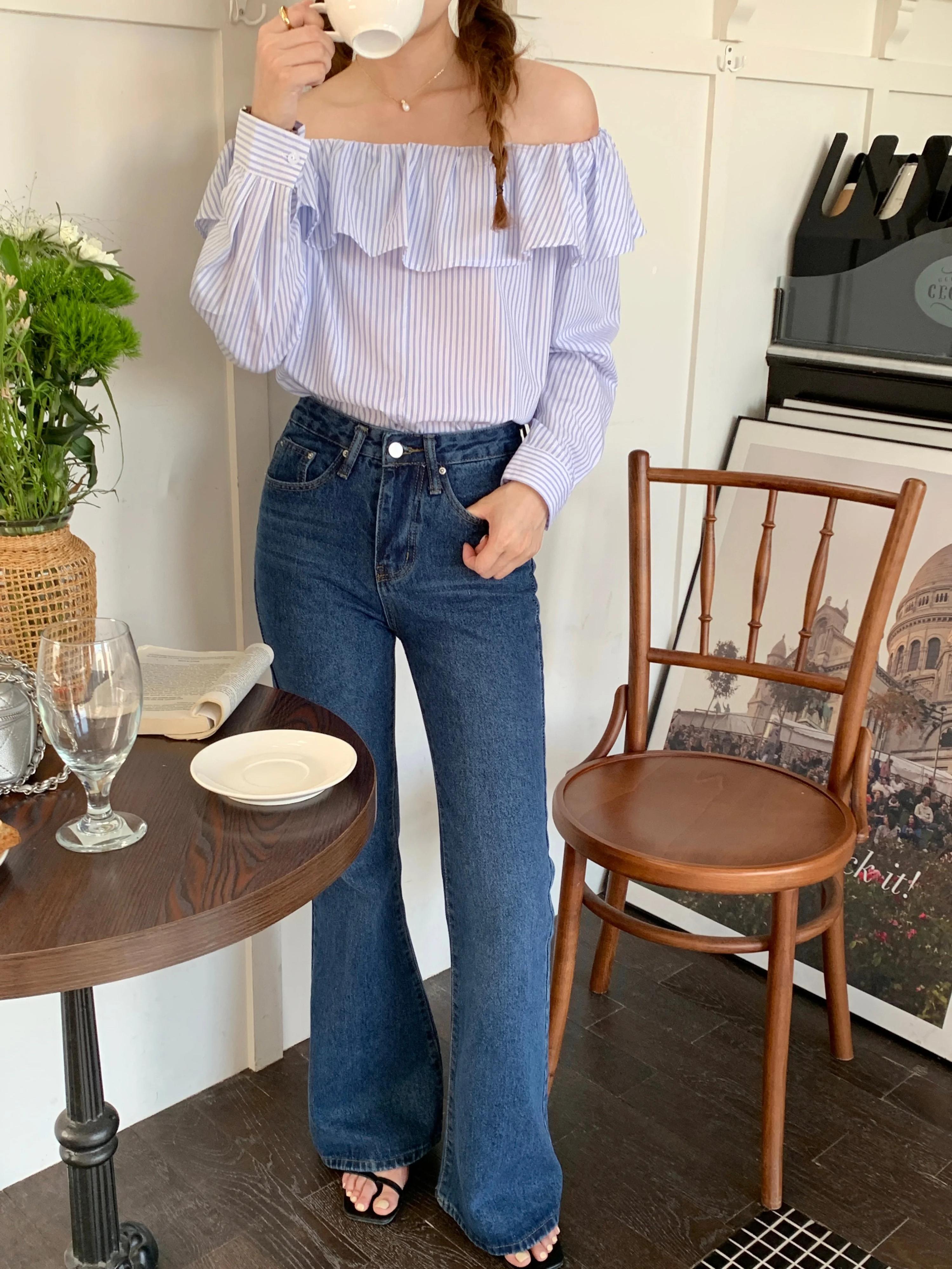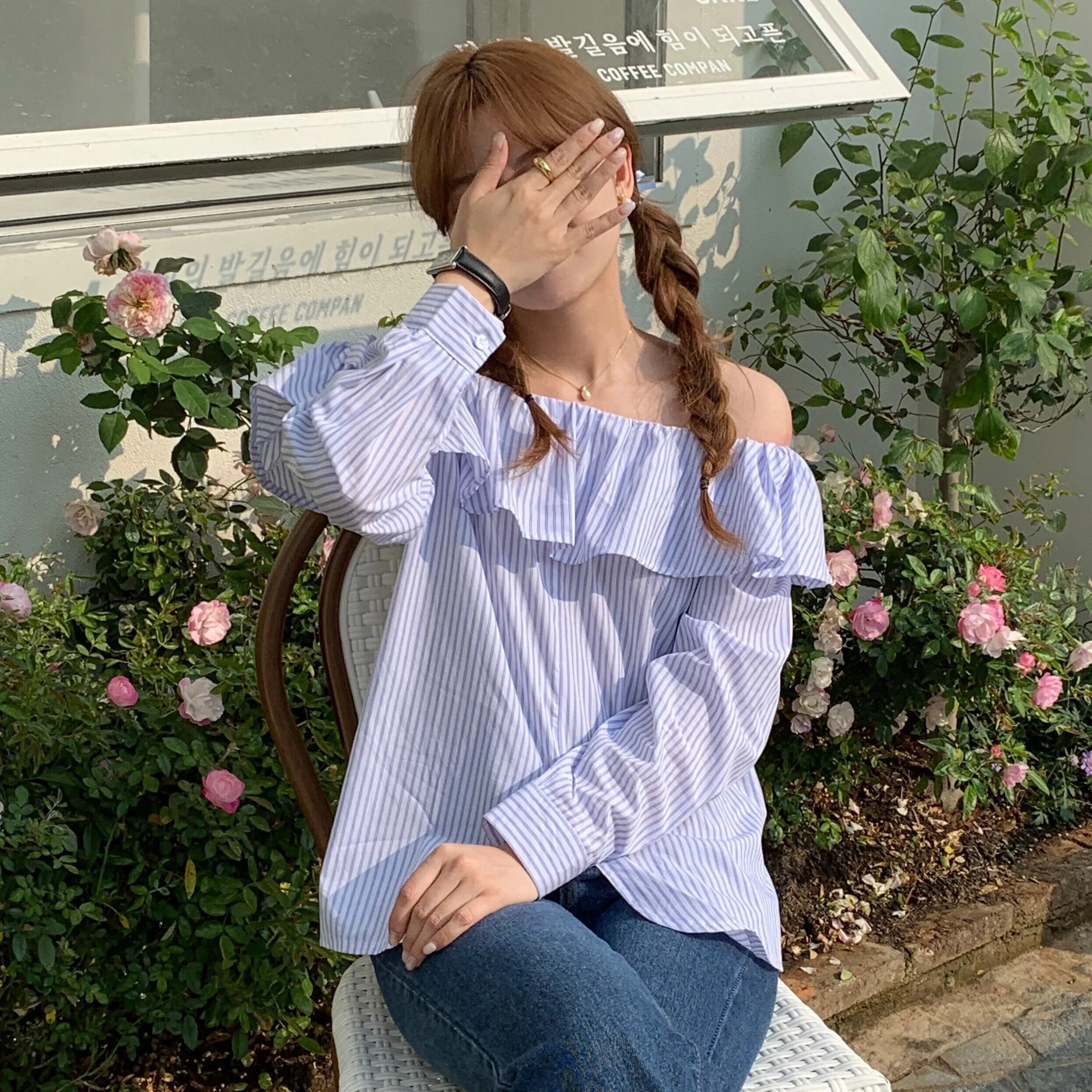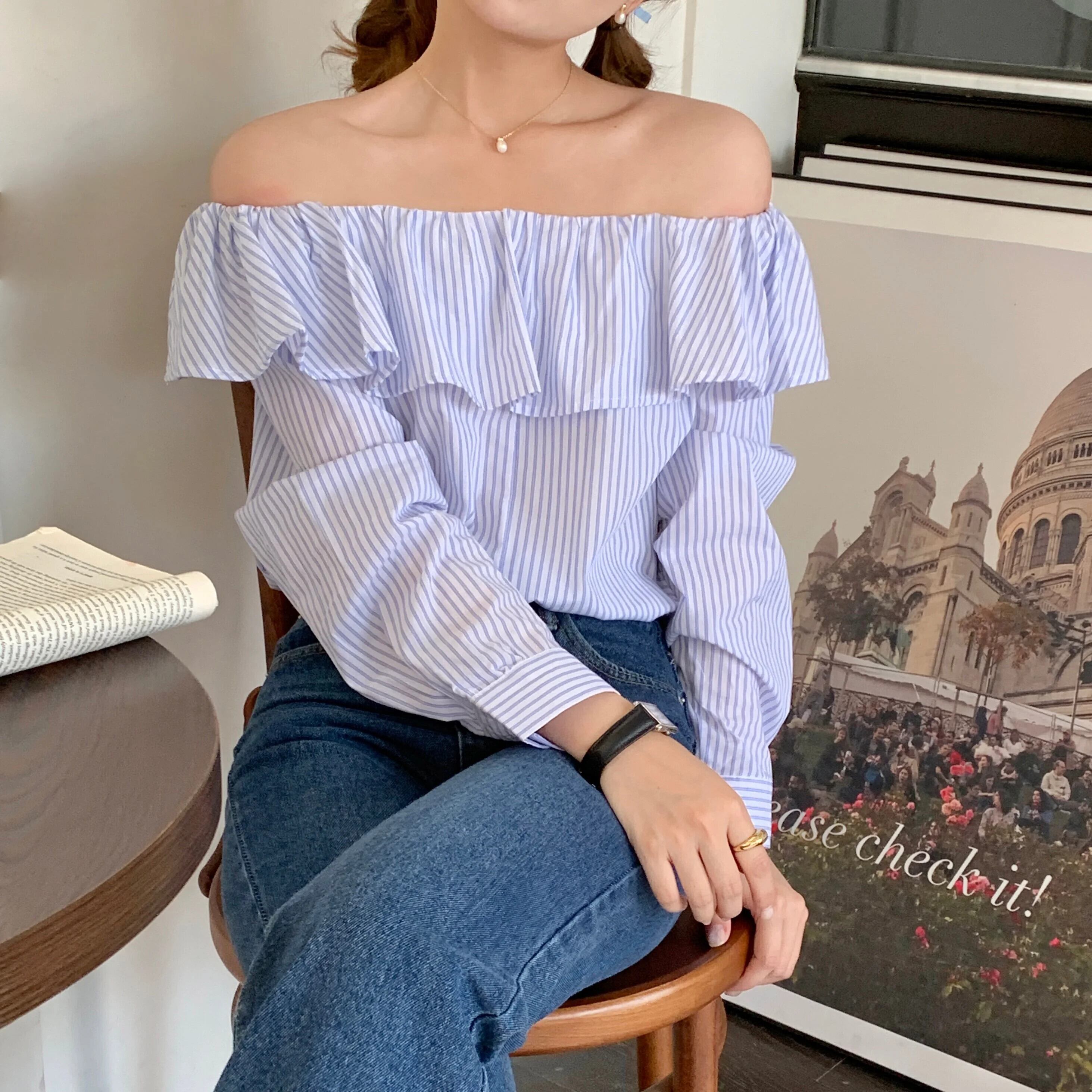 送料無料 Jielur 夏スリム女性ブラウスベーシックスラッシュネックブラウスフリルスプリット若いブラウス サマー 夏物 AE12188787863449456853