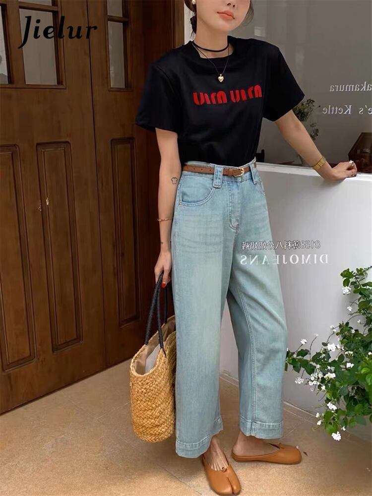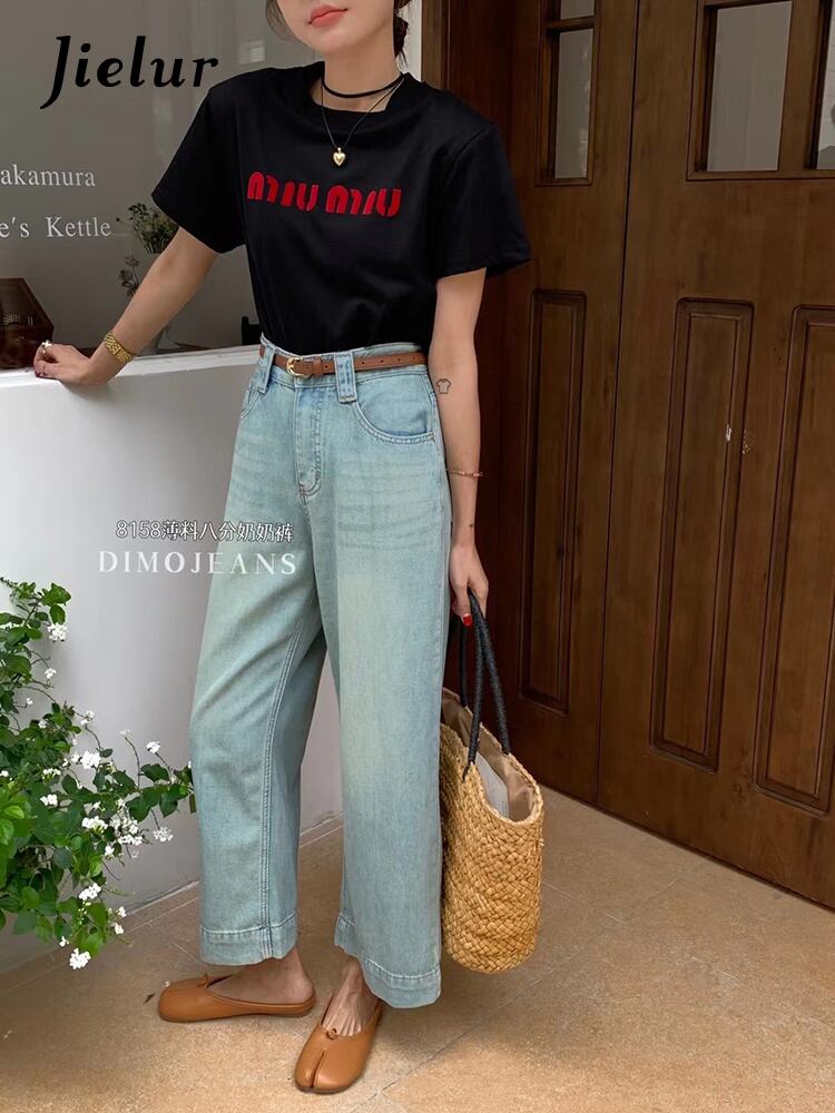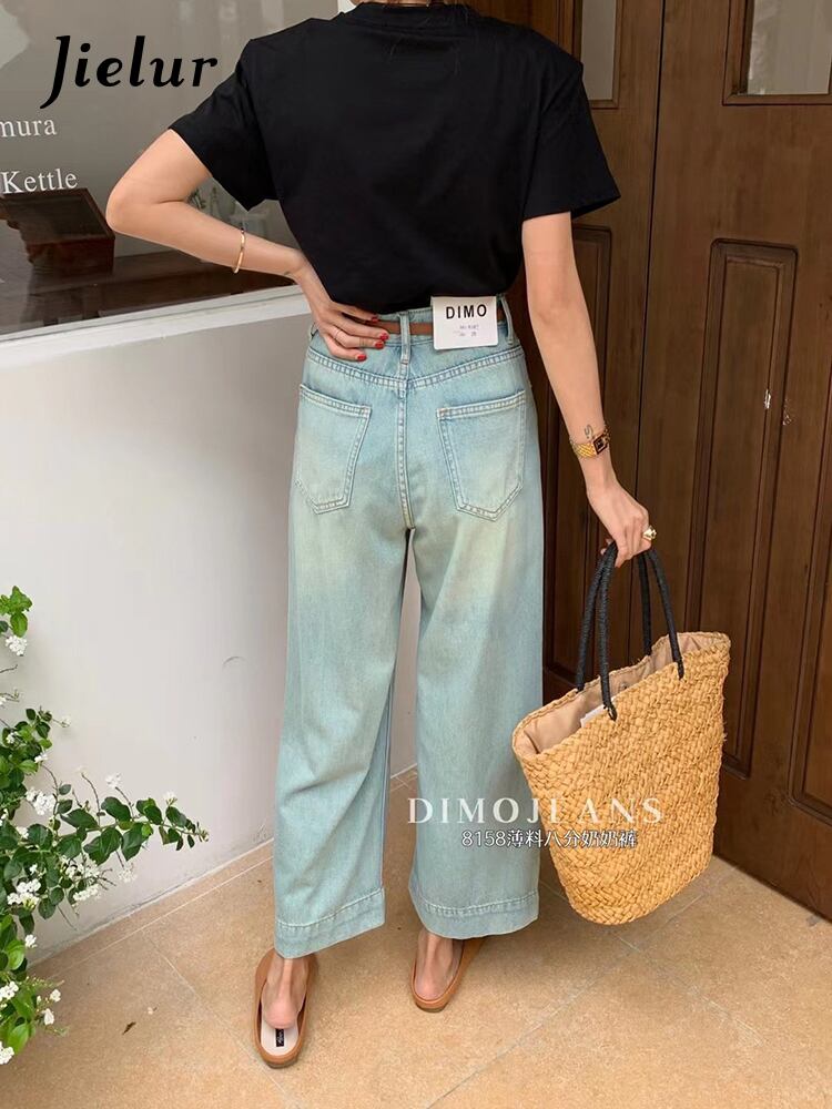 送料無料 Jielur 秋レトロスリムストリートジーンズ女性ルーズストレートジーンズブルーウエストベーシック Chicly ジーンズ女性 オータム 秋物 AE12188787893553909883