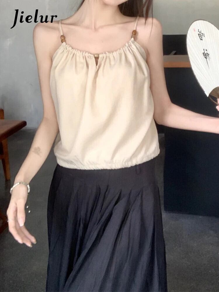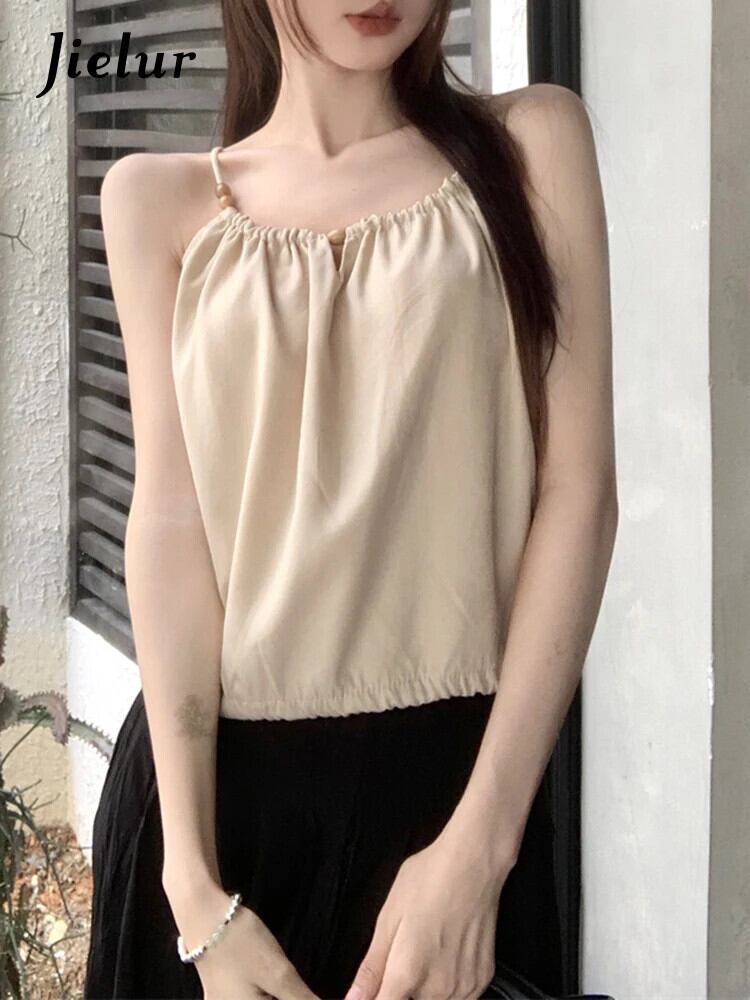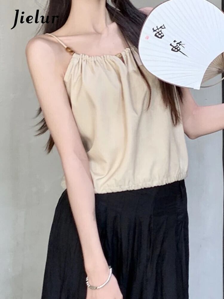 送料無料 Jielur 夏ヴィンテージホルターキャミソール女性のセクシーな甘い中空アウトレースアップ女性のキャミソール無地スリムノースリーブトップ 大人ガーリー スウィート キュート カジュアル サマー 夏物 ソリッドカラー ビンテージ AE12188787888051447934
