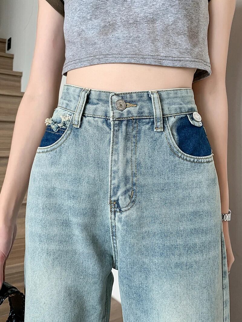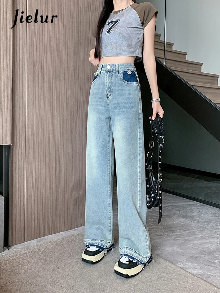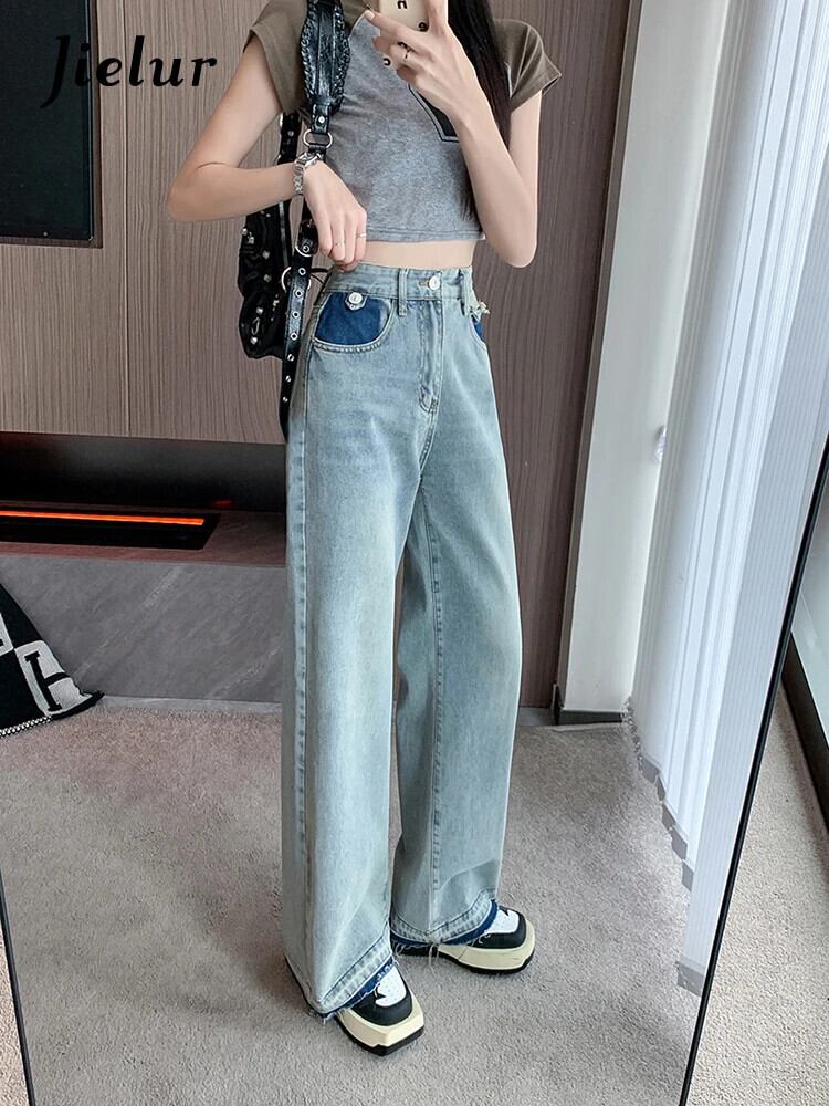 送料無料 Jielur 夏ウエストスリム女性のジーンズシンプルなベーシックジーンズ女性ブルーストリートシックな若いワイドレッグパンツ サマー 夏物 ワイドパンツ AE12188787882256757502