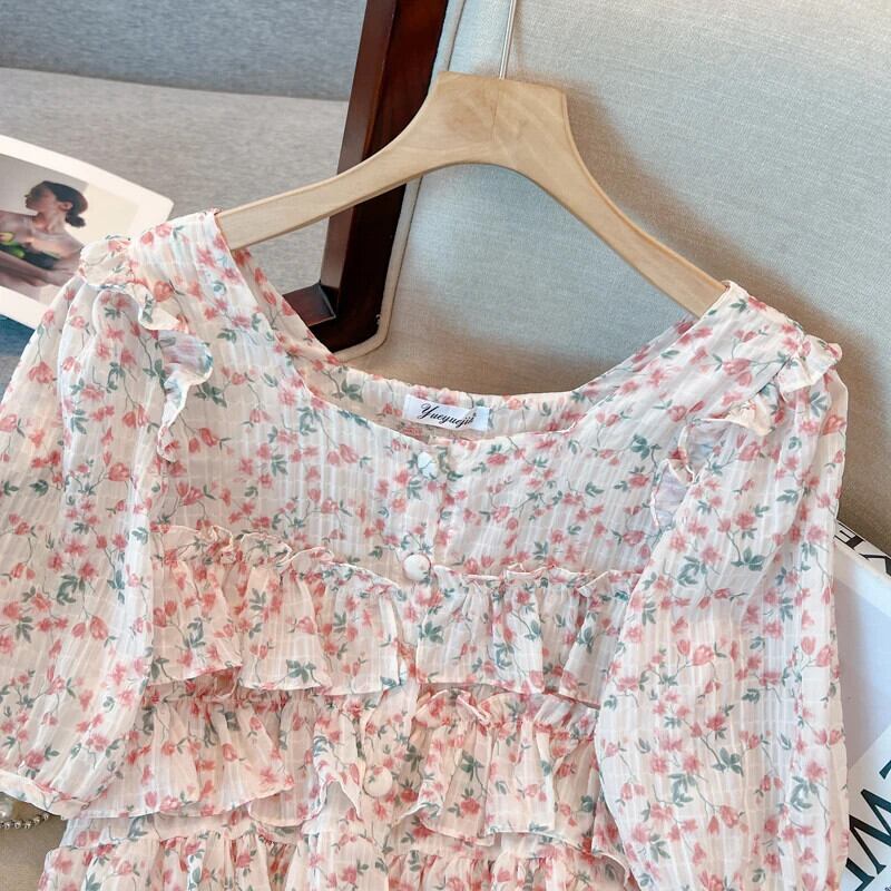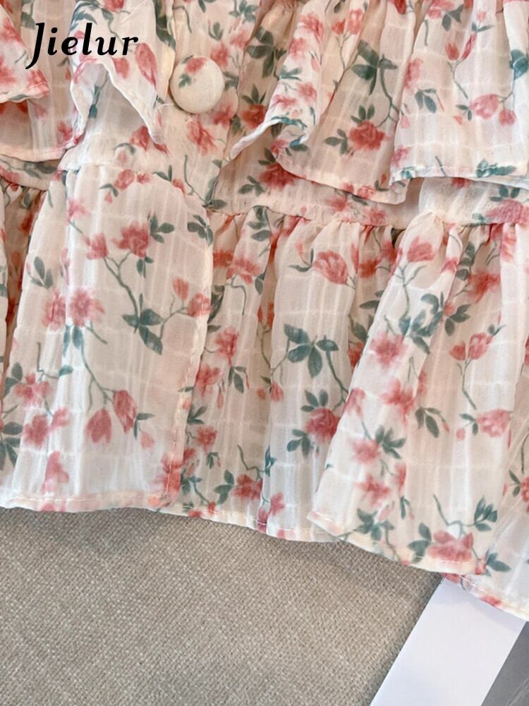 送料無料 Jielur 夏スリム甘い花柄女性ブラウスシフォンブラウス女性ルーズレッドブルーベーシックトップ 大人ガーリー スウィート キュート カジュアル サマー 夏物 AE12188787835672297743