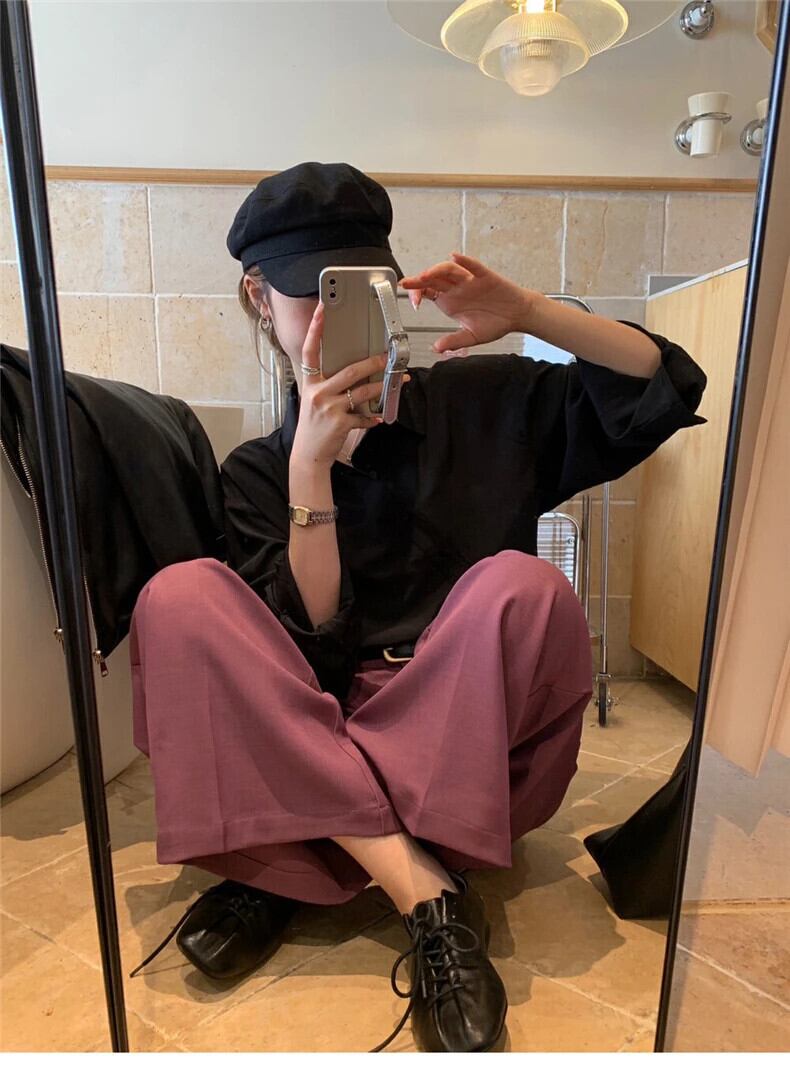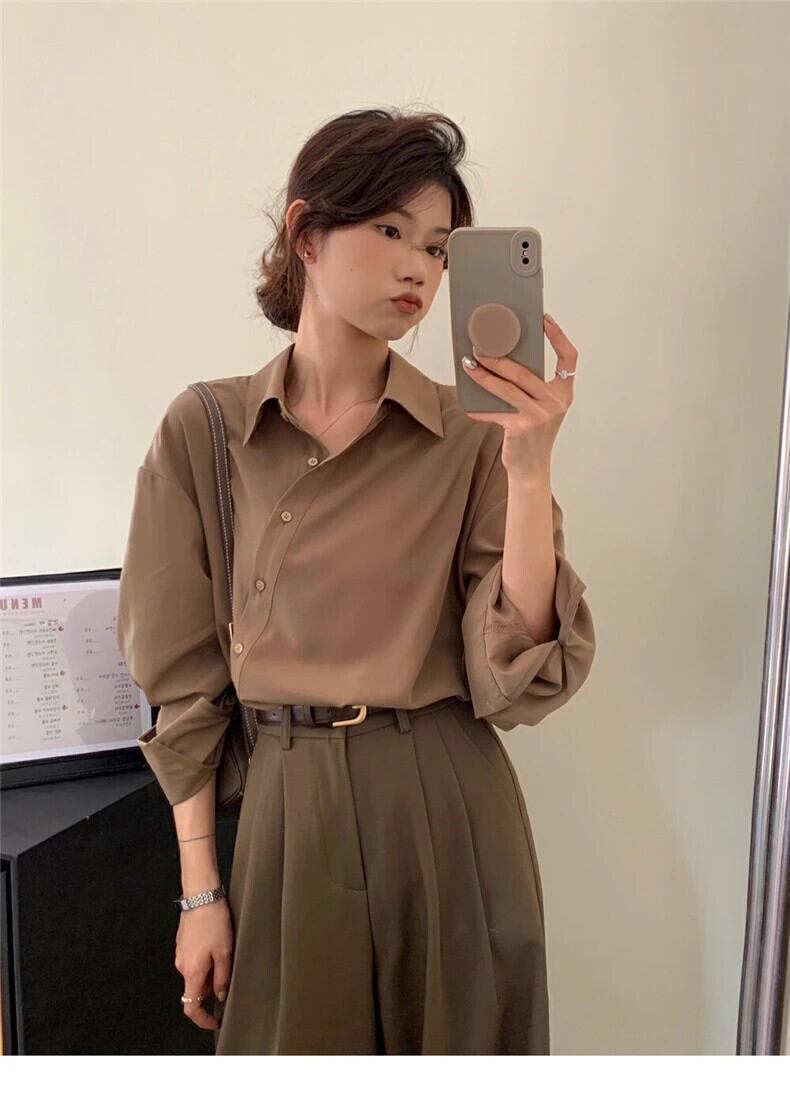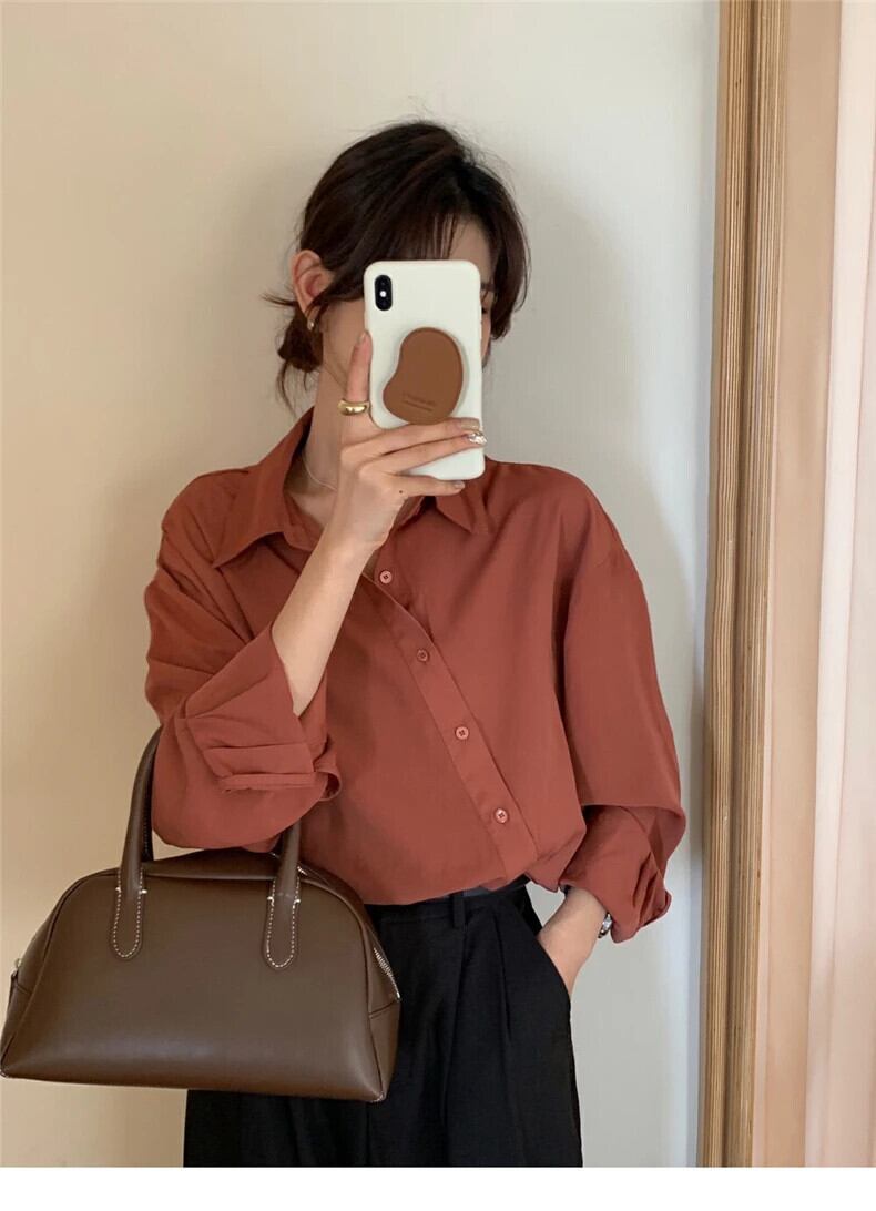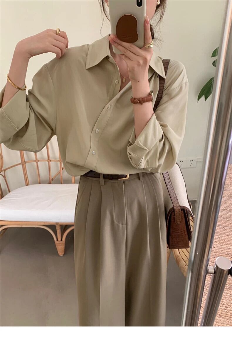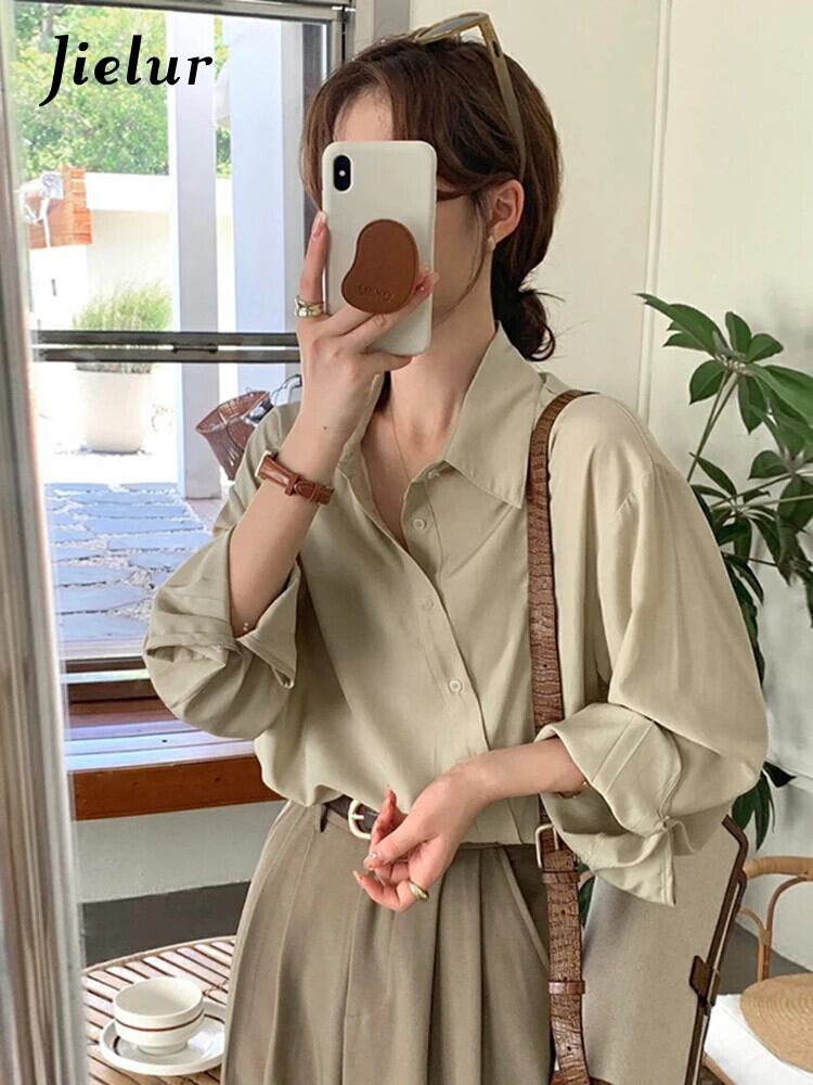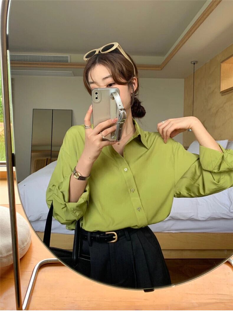 送料無料 Jielur 春無地スリム女性シャツルーズオフィス長袖女性シャツシンプルなベーシックグリーントップ ロング スプリング 春物 ソリッドカラー 会社 学校 通勤や通学にも AE12188787868738785372