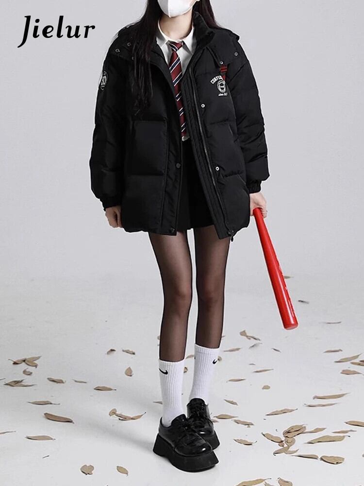 送料無料 Jielur 冬ソリッドカラー暖かいパーカー女性ルーズパーカー黒スリムストリートシックトップ女性 ブラック ウィンター 冬物 AE12188787834379885805