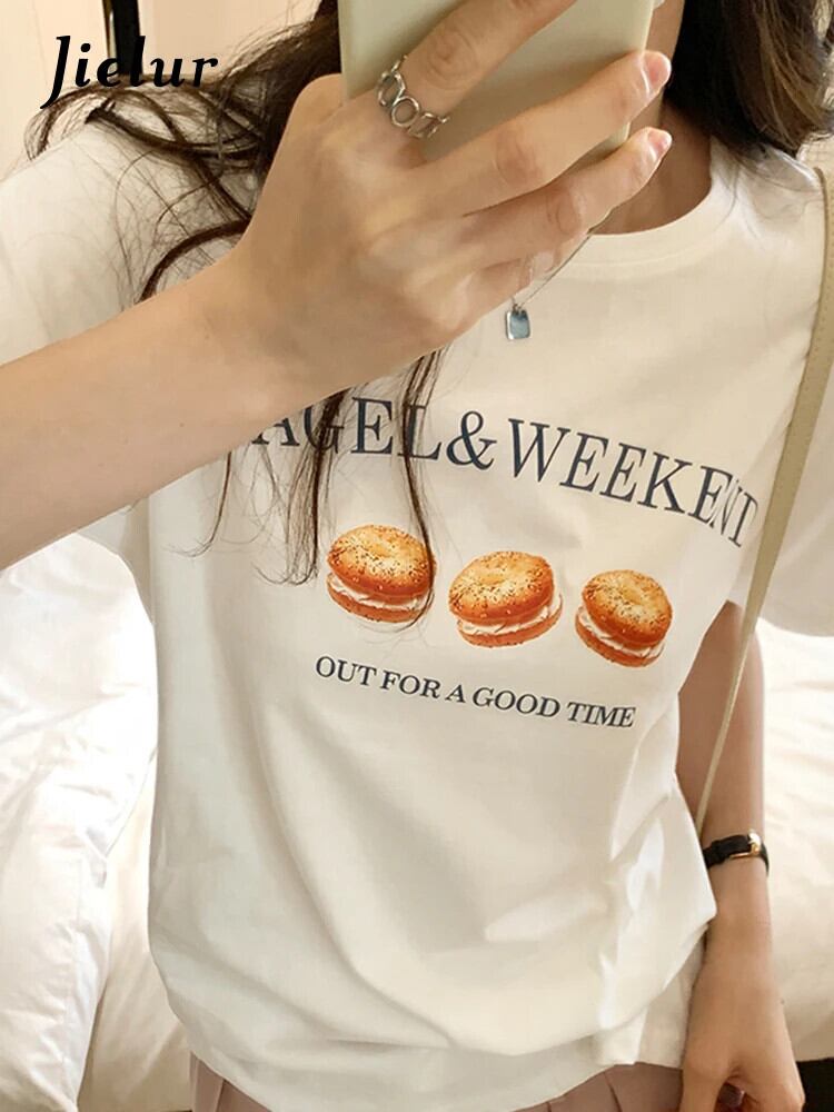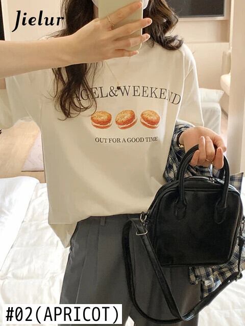 送料無料 Jielur 夏ルース女性の Tシャツスリムシンプルな Tシャツ女性白アプリコットベーシック O ネック S-XL Tシャツ ホワイト サマー 夏物 Oネック AE12188787811415492155